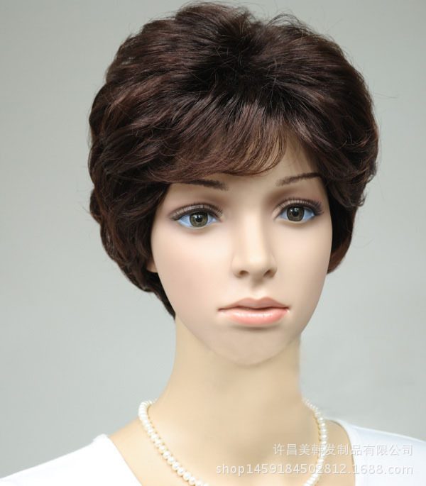Wigs With Short Curly Hair For Mothers, Short Hair For Middle-aged And Elderly Women, Real-hair Chemotherapy Wigs