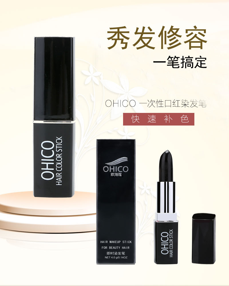 O H I C O Disposable Temporary Hair Dye Pen To Cover Gray Hair Lipstick Style Hair Dye Cream Temporary Black Hair Dye