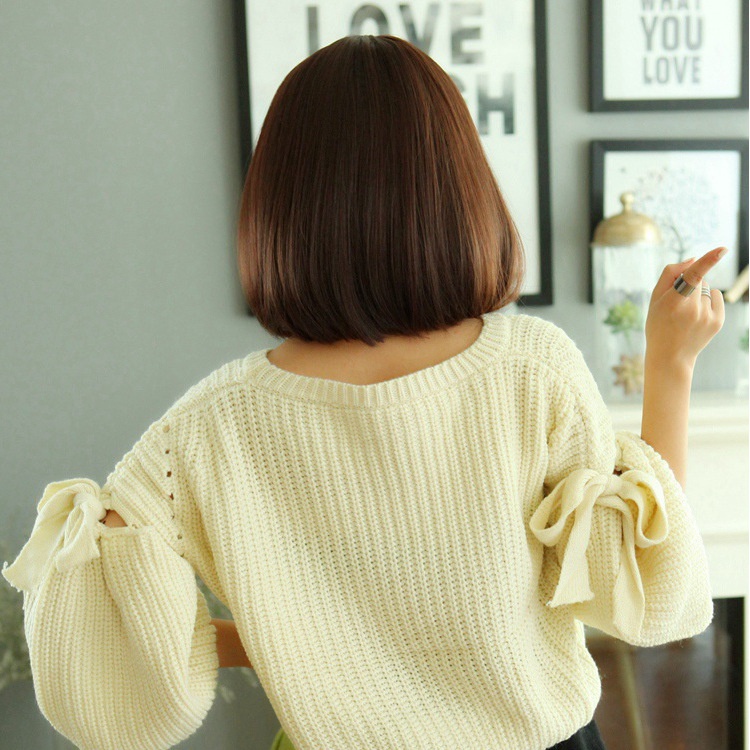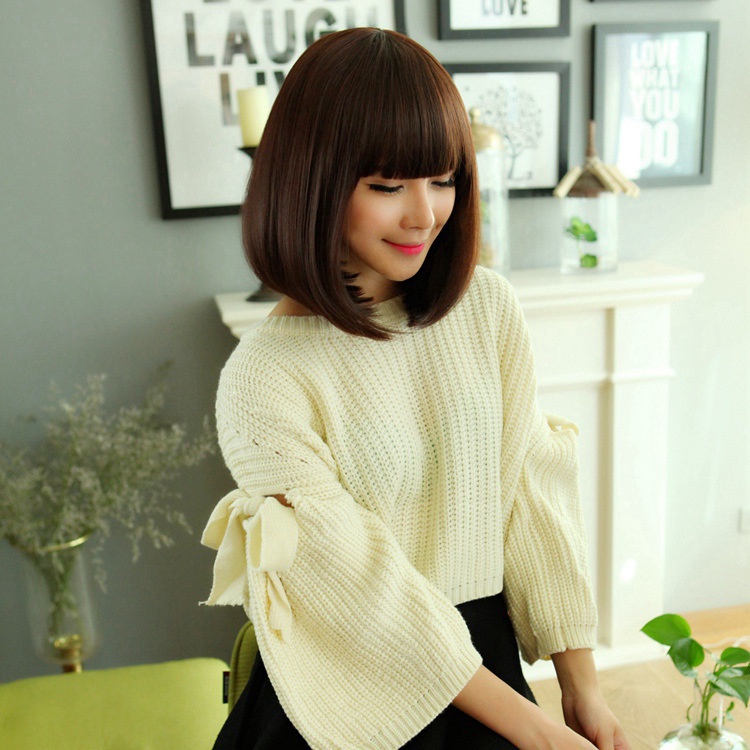Air Bangs Thin Wig Female Short Hair Bobo Inner Buckle Bob Fluffy Short Pear Head Slightly Curly Medium Length Wig Set