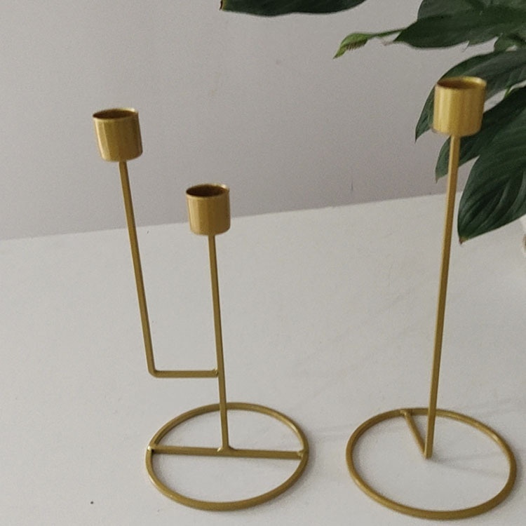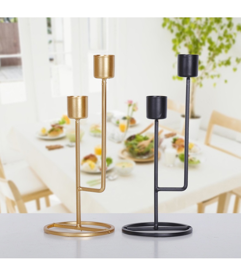 北欧轻奢风铁艺立式双口烛台咖啡厅样板房服装店餐厅装饰摆件