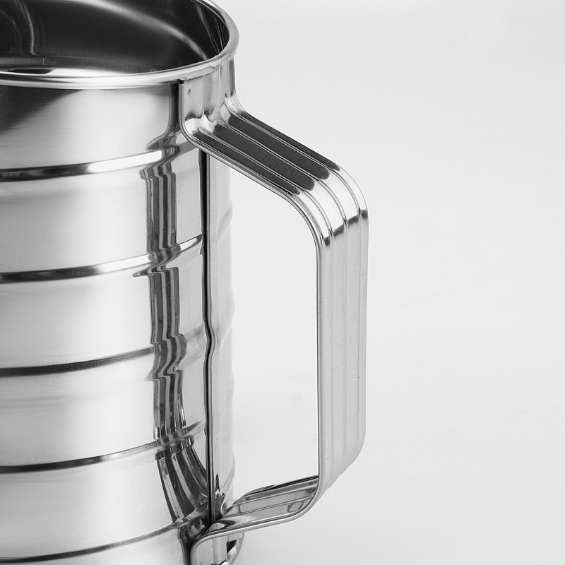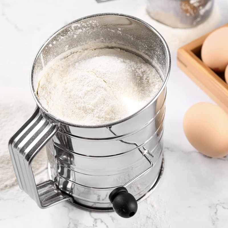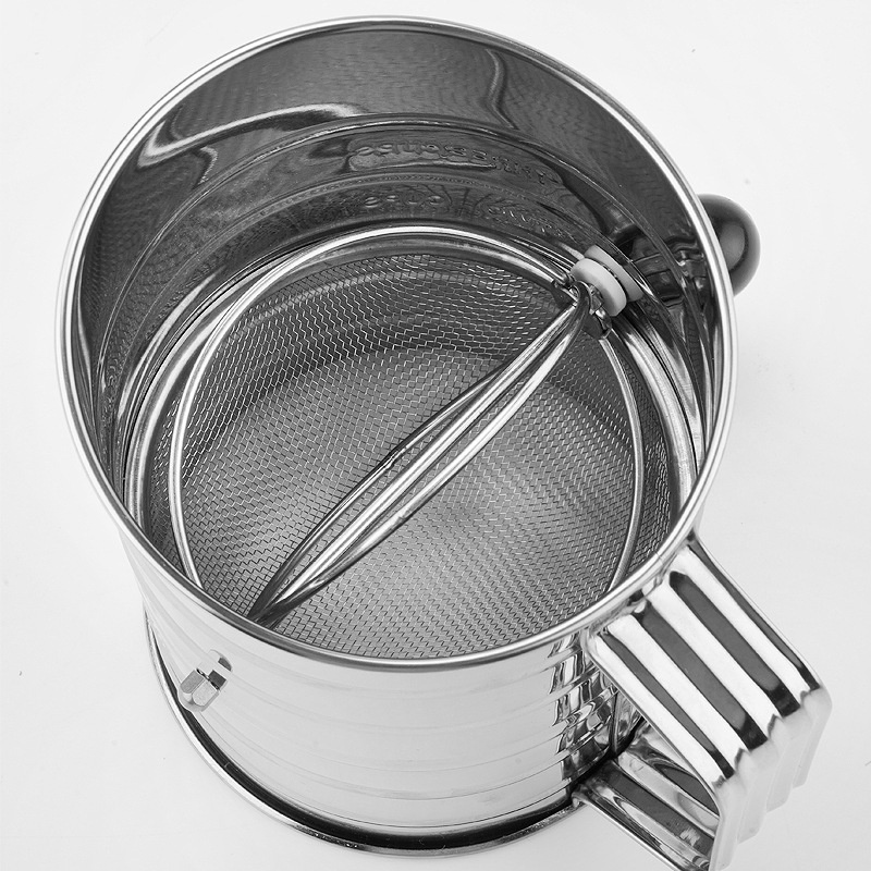 3cup Cup Flour Sieve With Stirring Ring Rotating Fine Mesh Manual Stainless Steel Cake Making Baking Sugar Powder