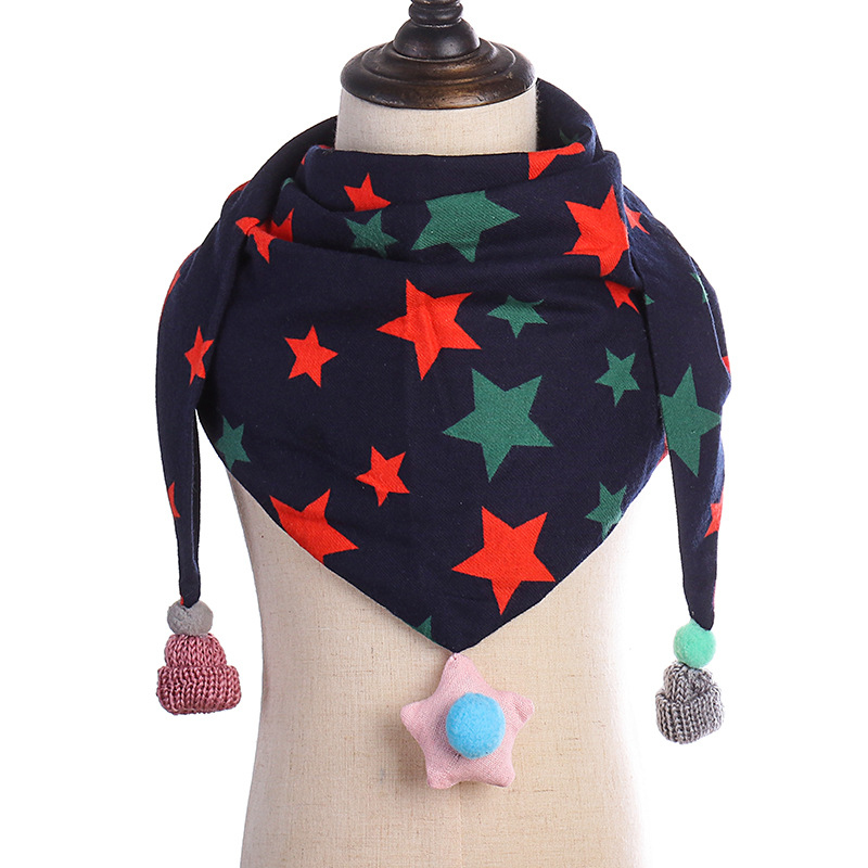 Autumn And Winter Children's Scarf For Boys And Girls Triangle Scarf Cartoon Printed Double-layer Cotton Tassel Warm And Cold-proof Scarf