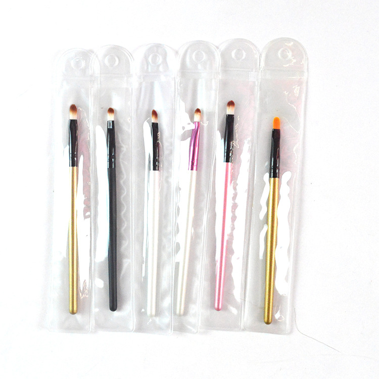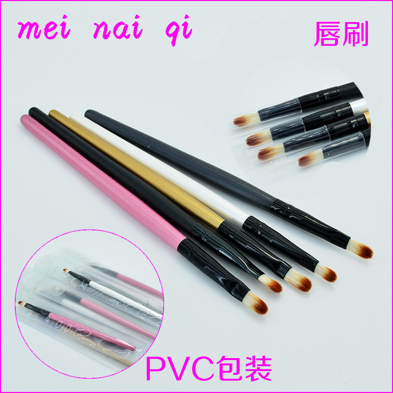 Mei Nai Qi Direct Wooden Handle Long Pole Lip Brush Artificial Fiber Hair Lip Brush P V C Packaging Multiple Colors Optional