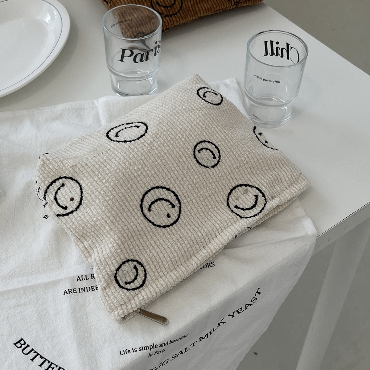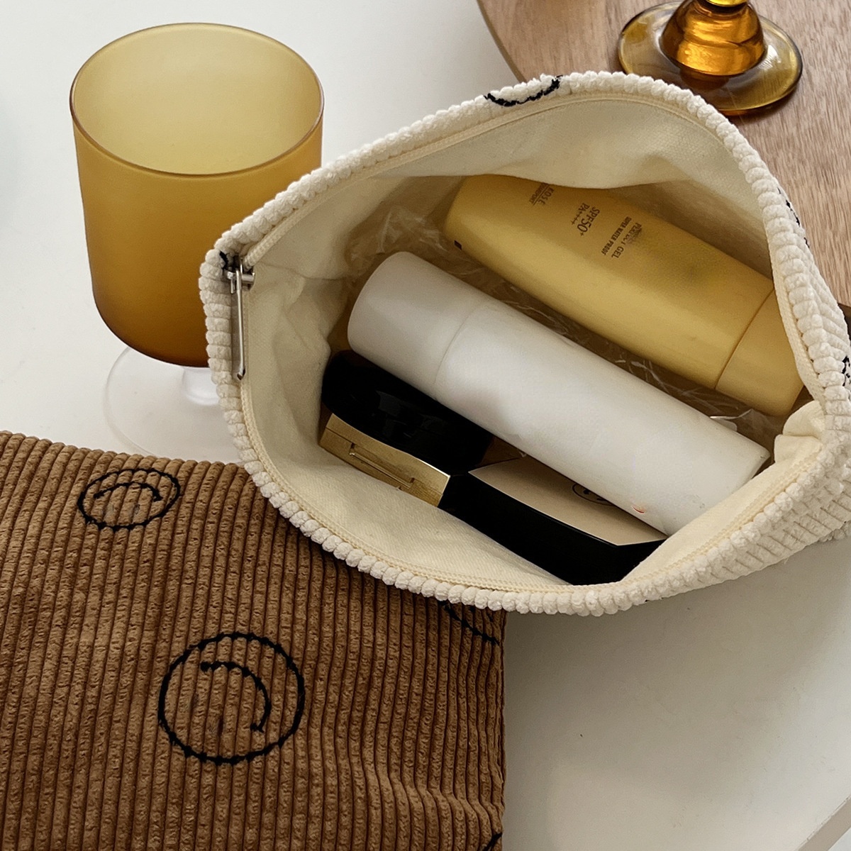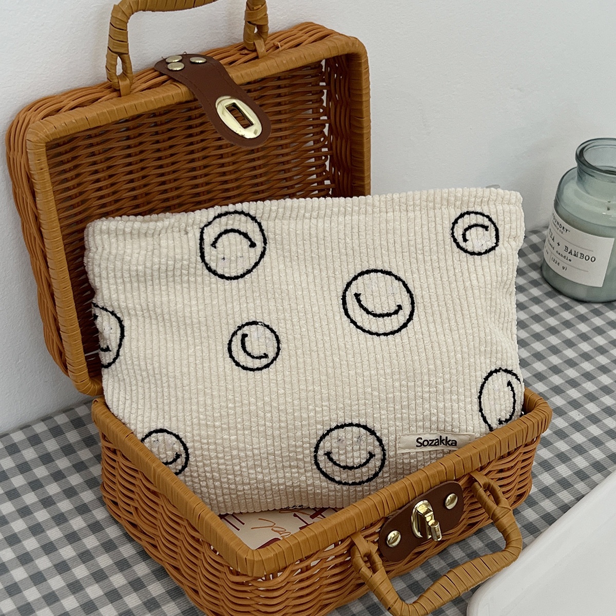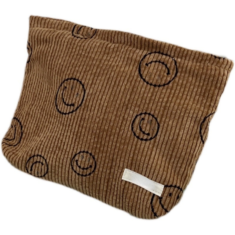 Portable Carry-on Lazy Pencil Case Storage Cosmetic Bag Large Capacity Wash Smiley Face Corduroy Hand-held Coin Purse
