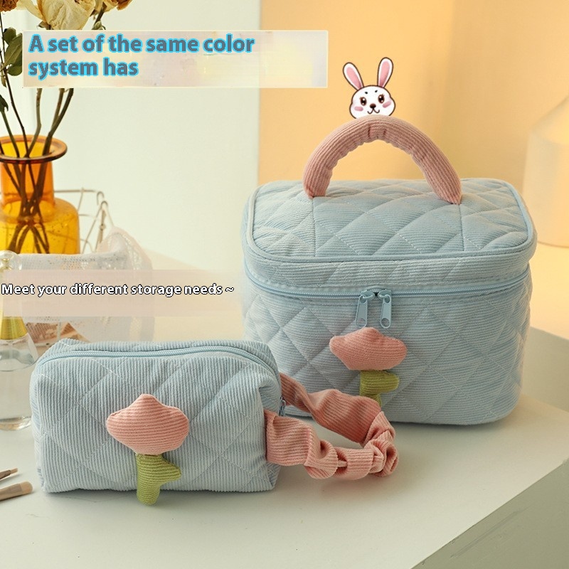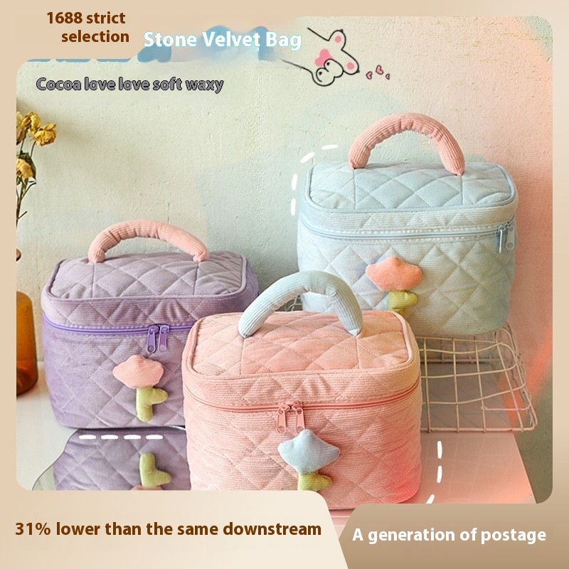 Corduroy High-value Female Cosmetic Bag Portable Large Capacity High-end Cute Toiletries Storage Bag