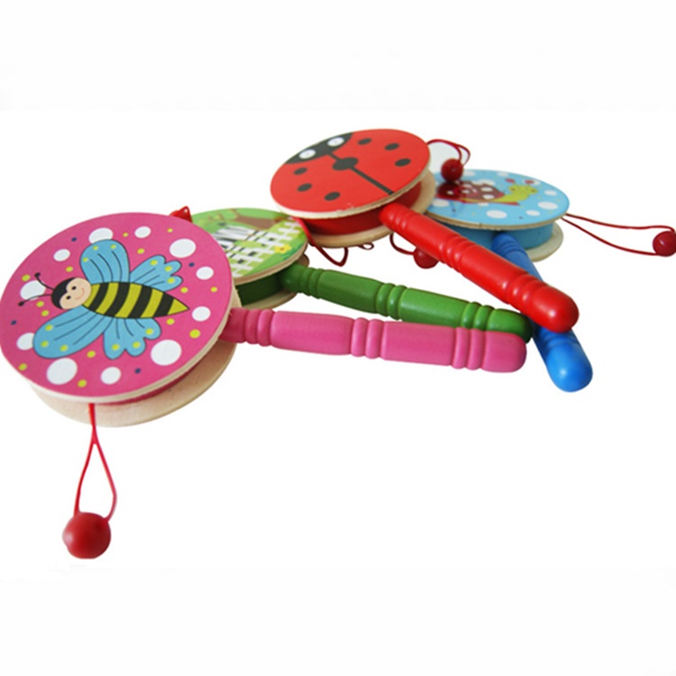 Wooden Cartoon Rattle Children's Hand Drum Rattle Infant Early Education Traditional Toy