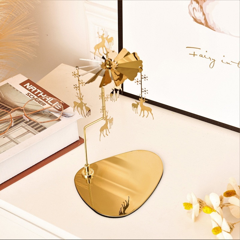 Christmas Aromatherapy Stainless Steel Doles Round Triangle Tray Rotating Candle Holder Revolving Lantern