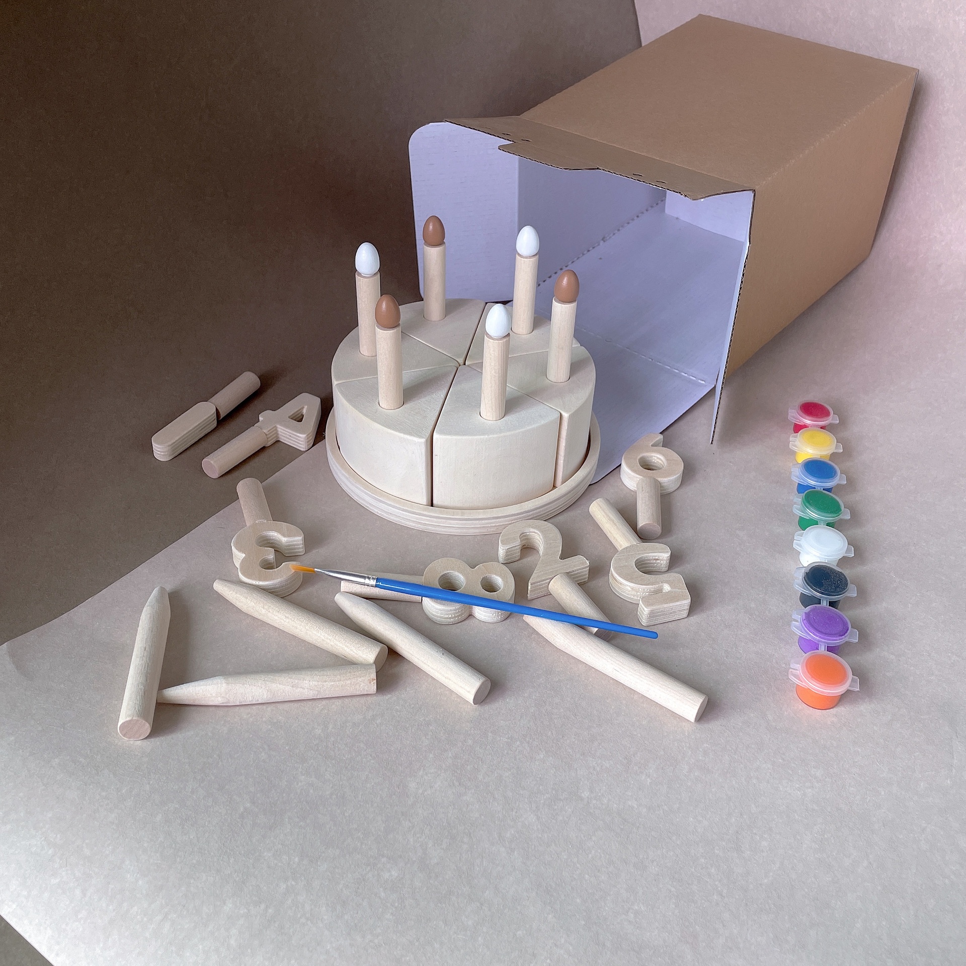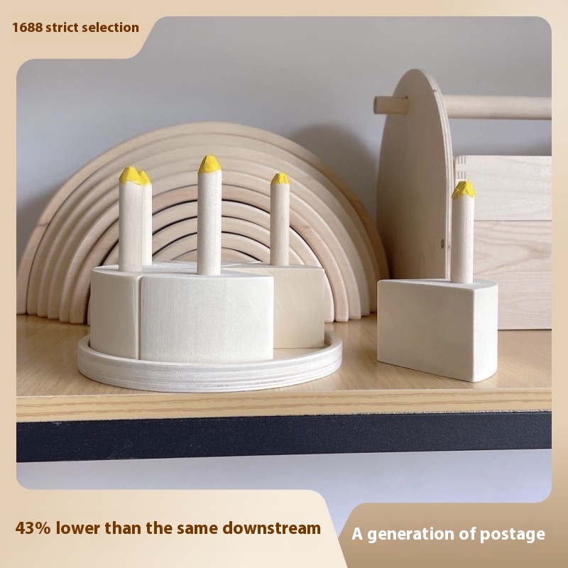 椴木原木数字蛋糕生日蛋糕 D I Y手工画画过家家木制益智玩具