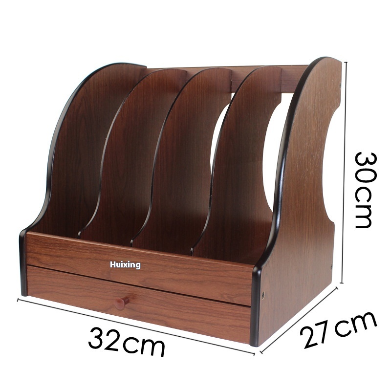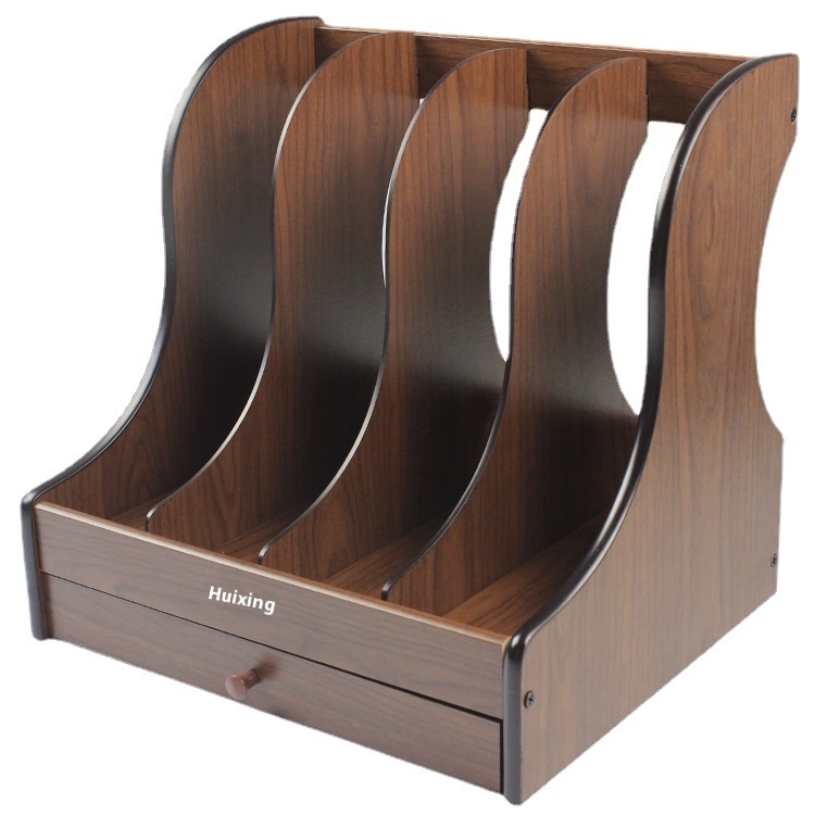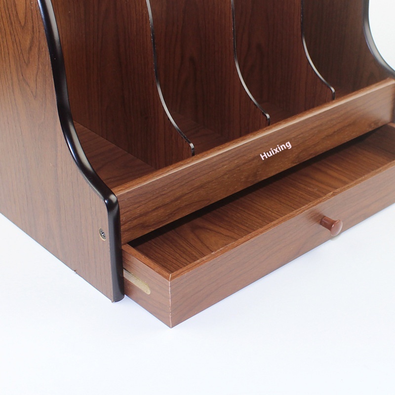 Huixing Wooden File Column Desktop Office Wooden Four-part File Column Four-column Bookshelf File Storage Box