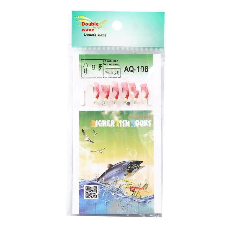 Double Wave Bionic String Hook Fishing Set Shrimp Skin Rubber Luminous Hook Fishing Gear Fish Hook6 Sets Of Bionic String Hook