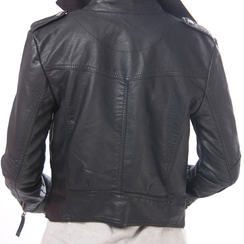 Women's Clothing Hot-selling Washed Pu Leather Diagonal Zipper Motorcycle Leather Jacket Short Jacket Handsome Leather Jacket