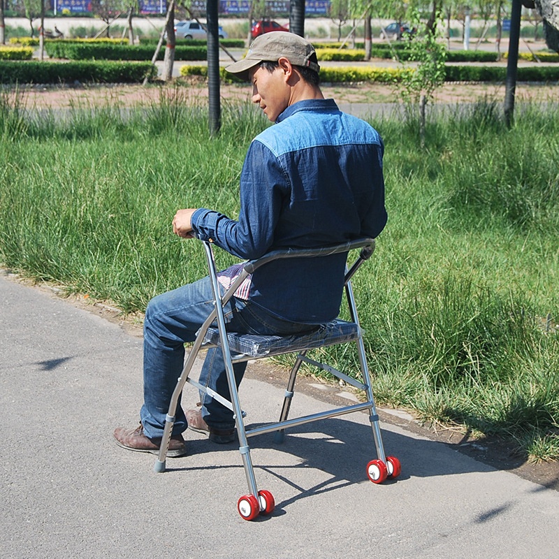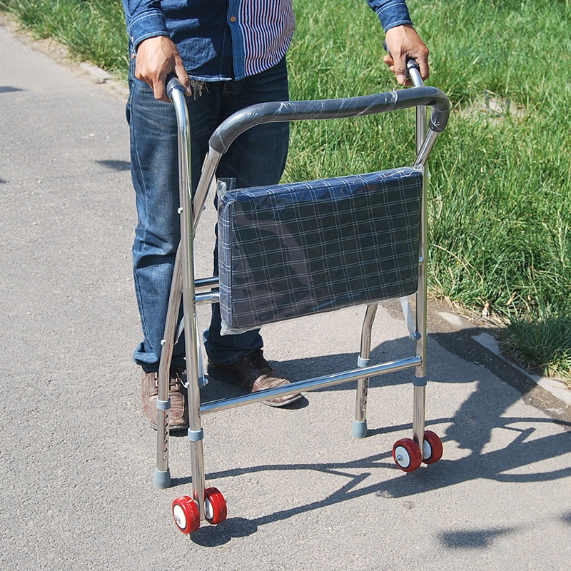 Stainless Steel Wheel Seat Walker For The Elderly Folding Pulley Belt To Make Cloth Aid Walker Double Wheel Foldable