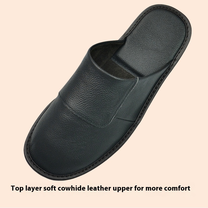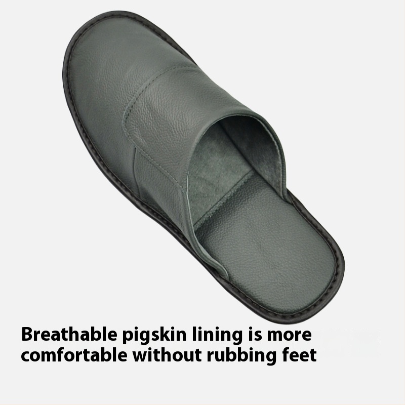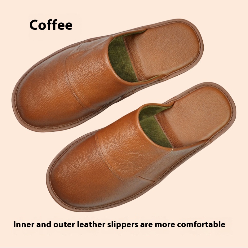 Genuine Leather Baotou Leather Slippers For Men And Women Home Use Spring And Autumn Indoor Cowhide Soft Bottom Non-slip Cotton Slippers