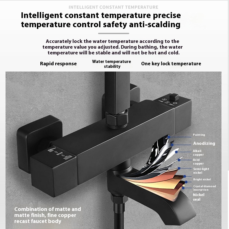 Thermostatic Shower Set All-copper Shower Faucet Black Pressurized Multi-function Shower Project