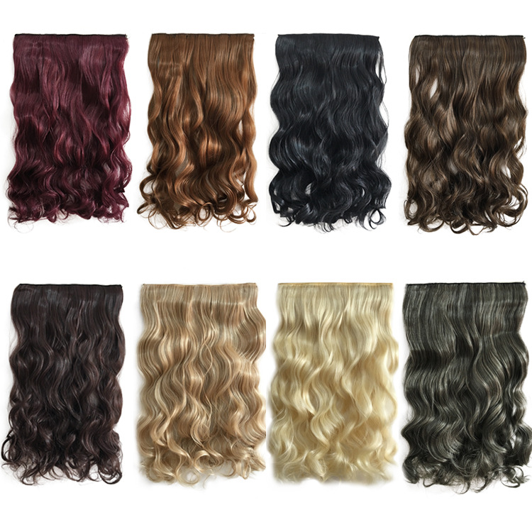 European And American Style5 Card Curling Hair Extensions One Piece Thickened Seamless Clip Chemical Fiber Hair Curtain Wig Curling Piece