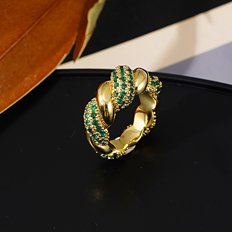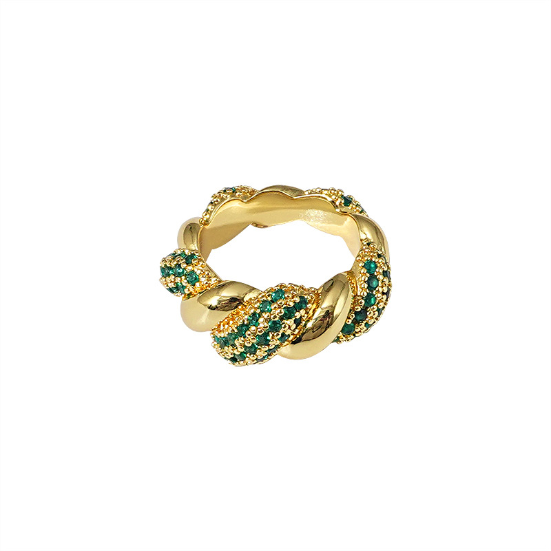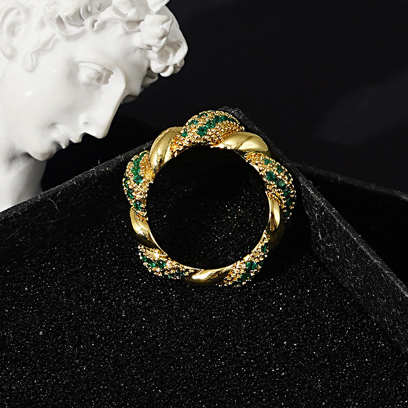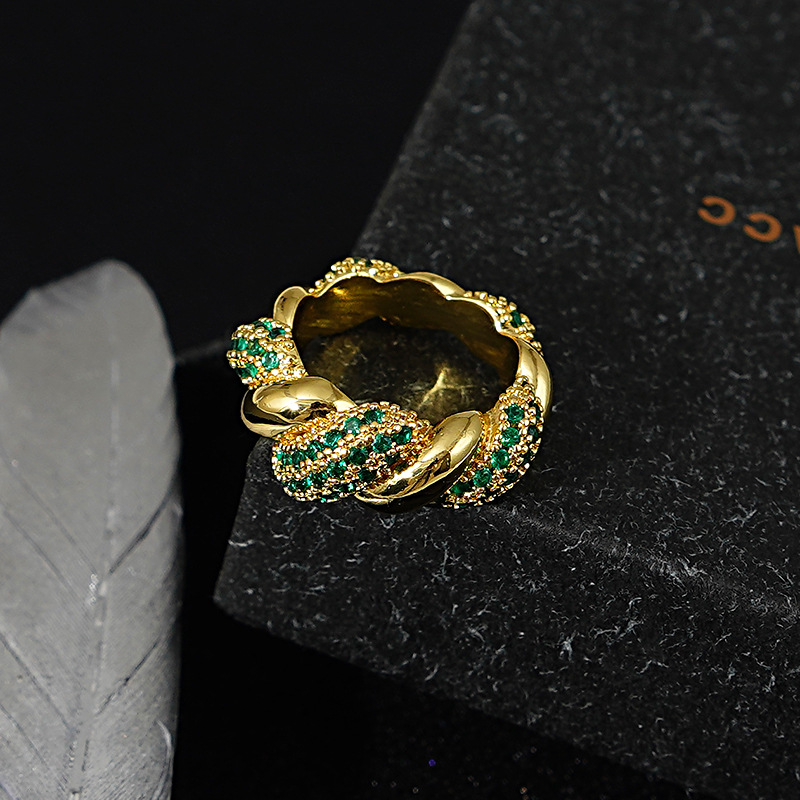 Light Luxury Ring Women's Fashion High-end Personality Popular European And American Ring Niche Design Green Index Finger Ring