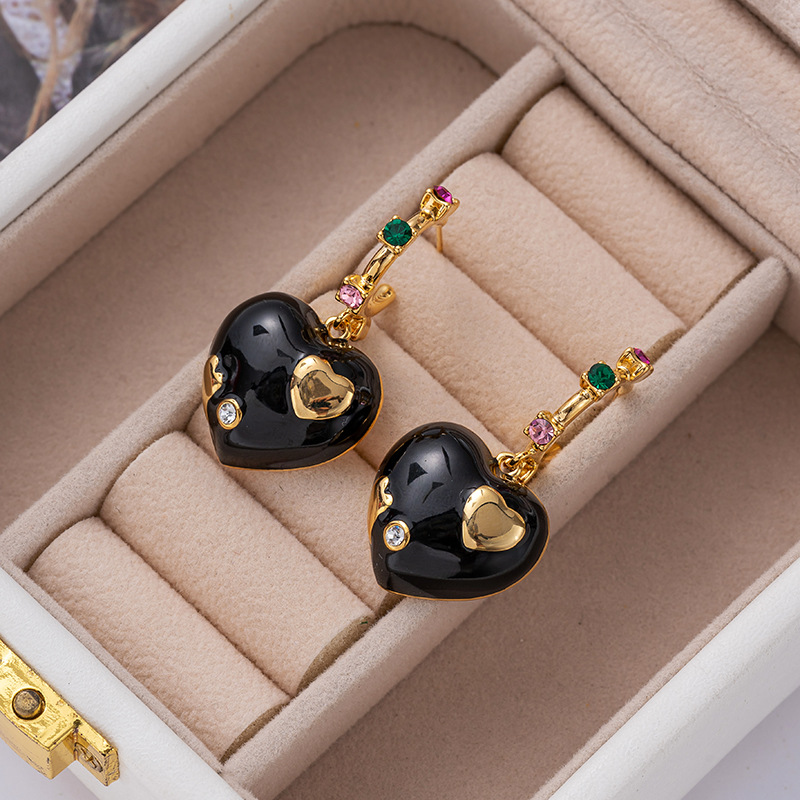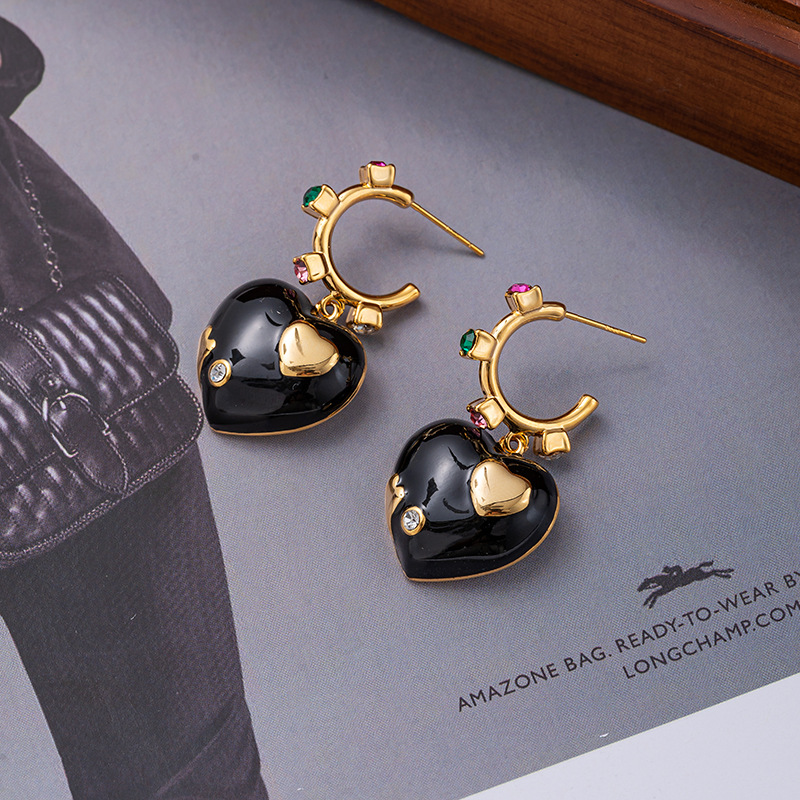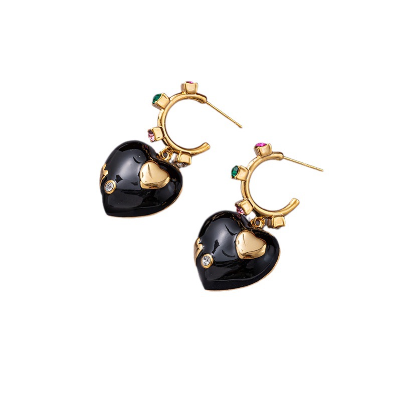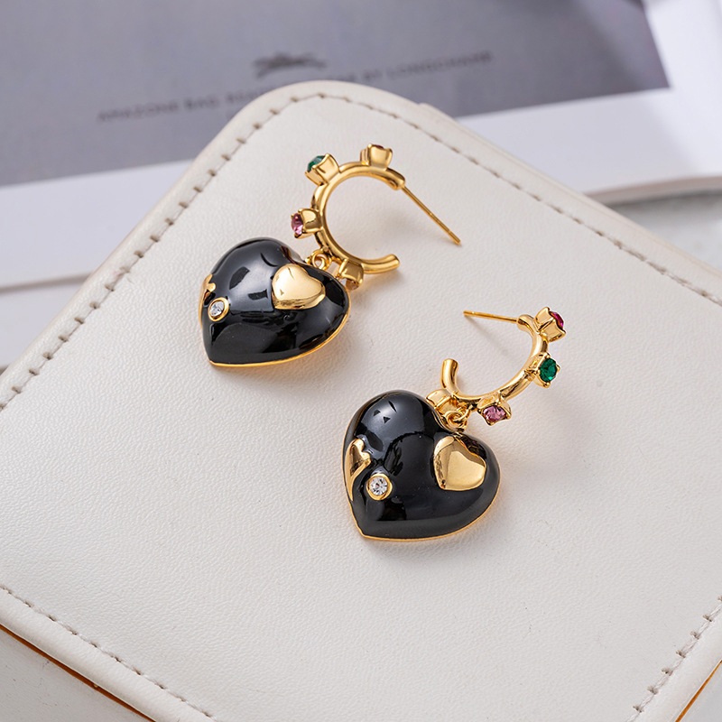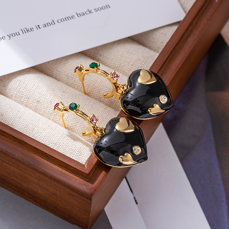 Retro Enamel Love Earrings For Women Niche High-end Earrings Internet Celebrity Temperament Light Luxury Earrings