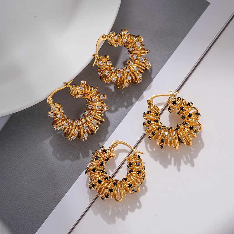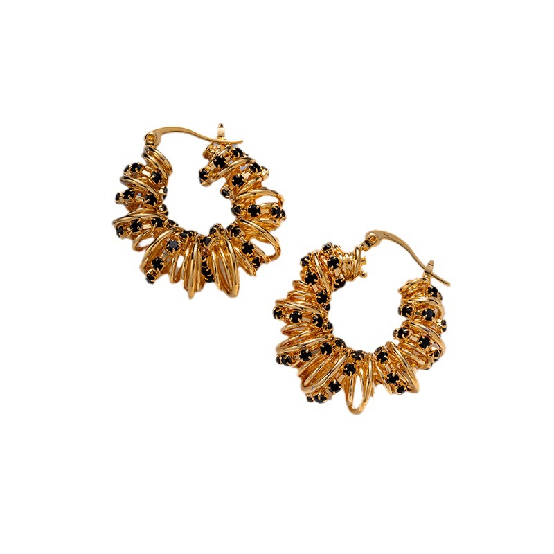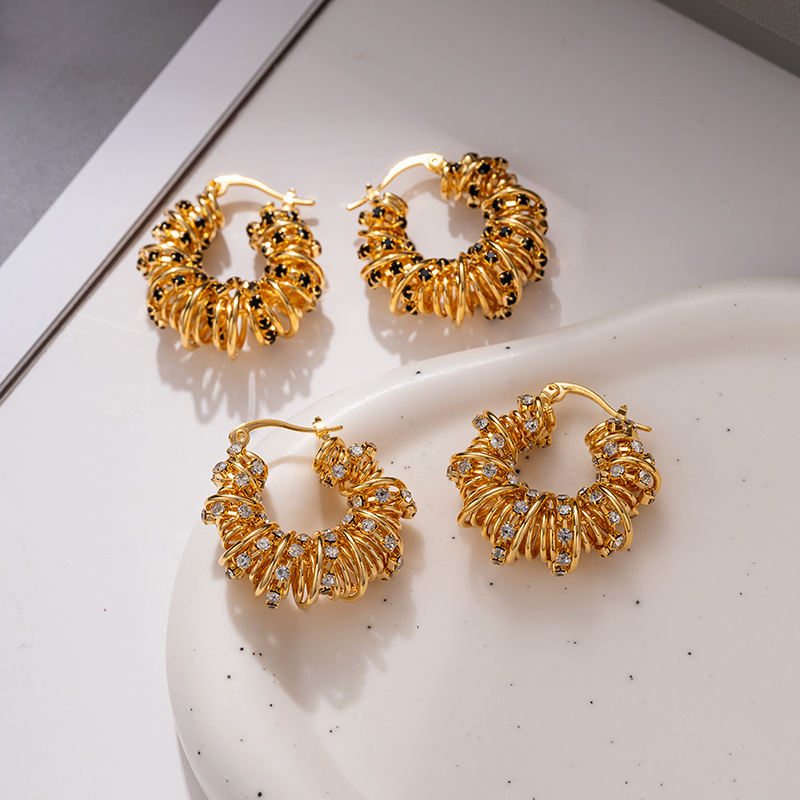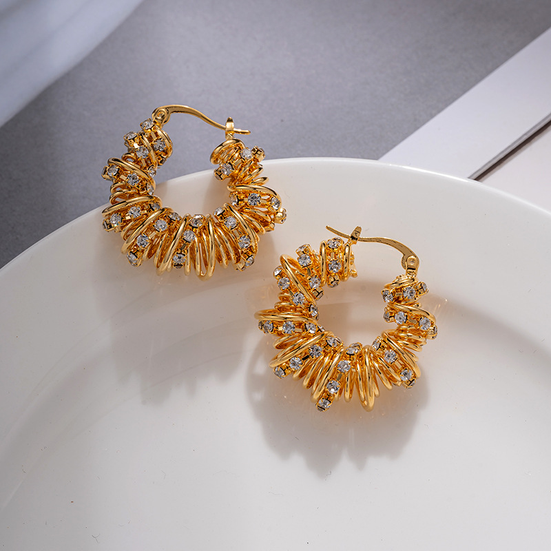 Braided Telephone Coil Hoop Earrings For Women, European And American Temperament, Fashionable Diamond Earrings, Retro Light Luxury, High-end Earrings