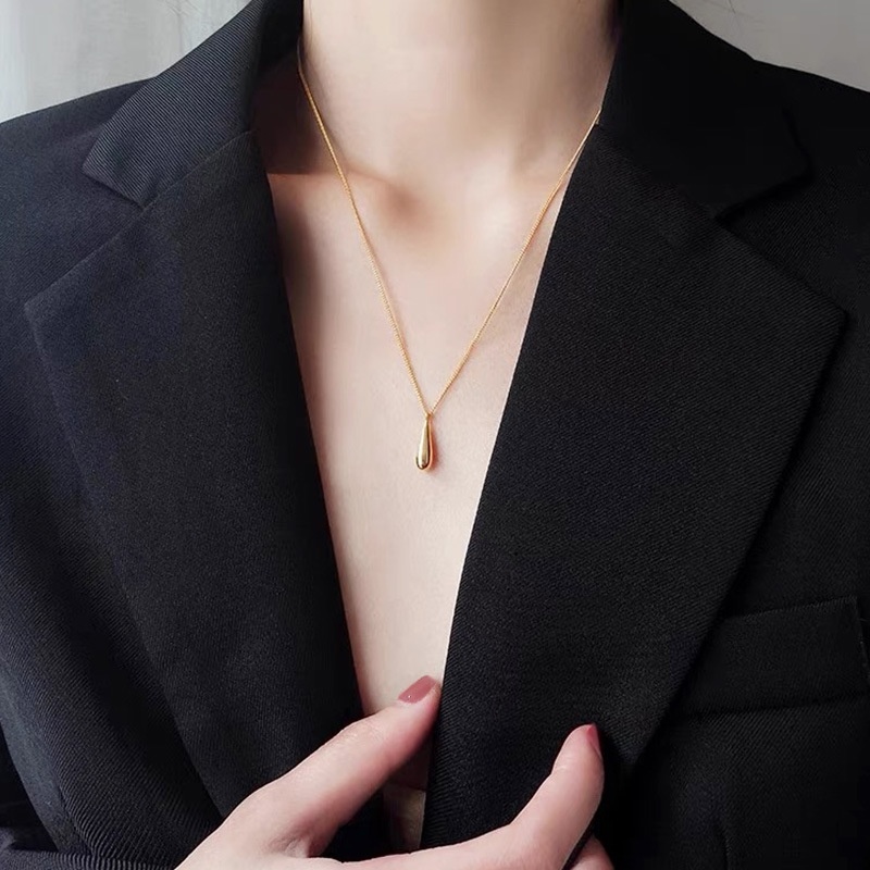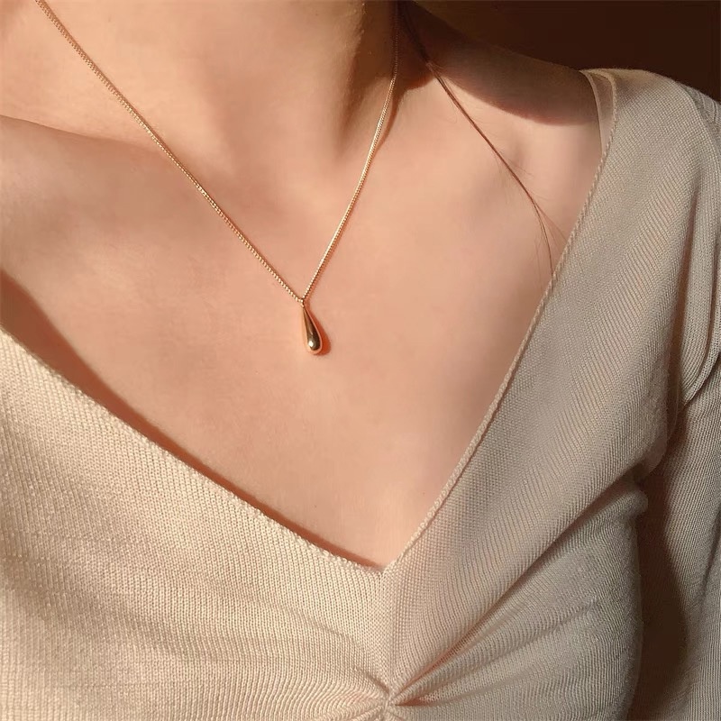 Korean Version S925 Sterling Silver K Gold-plated Water Drop Personalized Necklace Women's Clavicle Chain Hot Necklace