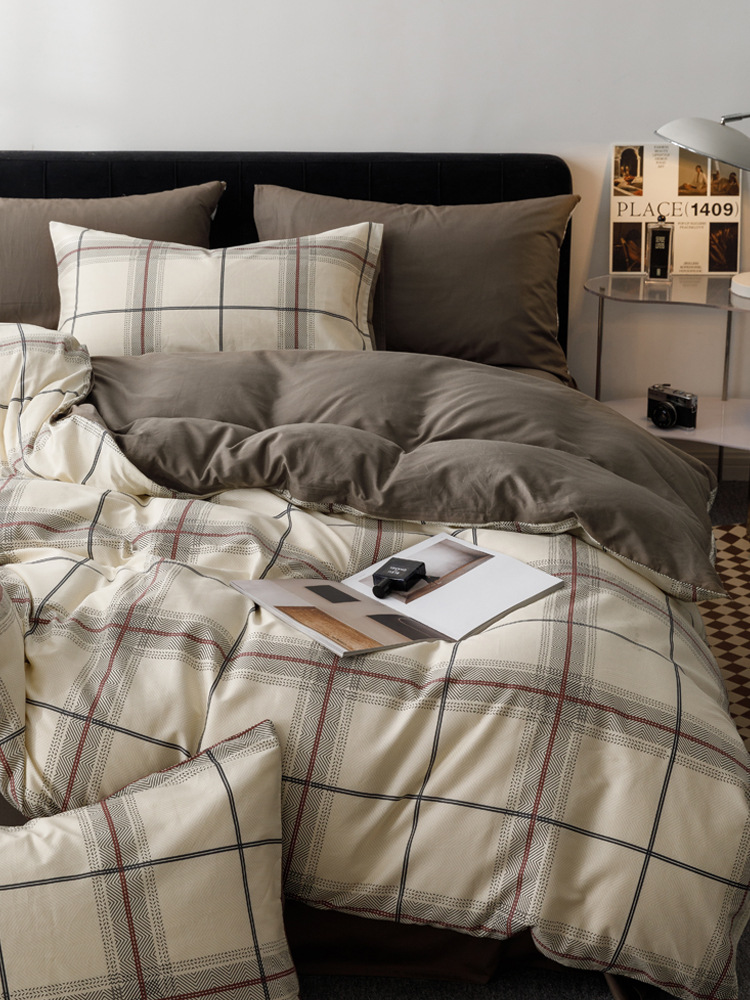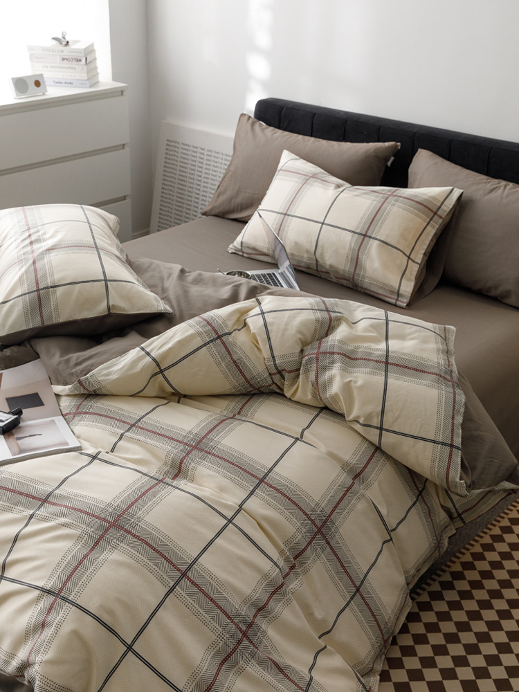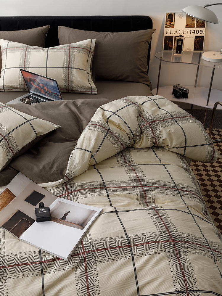 Nordic Pure Cotton Bed Four-piece Set100 Cotton Bedding Simple Dormitory Bed Sheet Three-piece Set Men's Fitted Sheet Quilt Cover