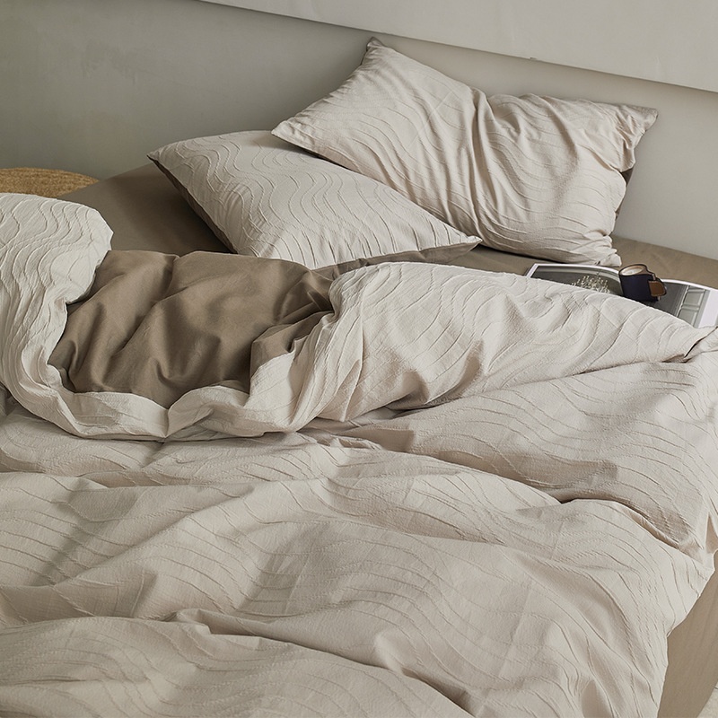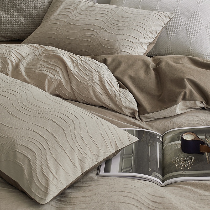 Three-dimensional Curve Jacquard丨 Four-piece Set Of Pure Cotton, Light Luxury And High-end Bed Sheets And Quilt Covers, Simple B& B Bedding