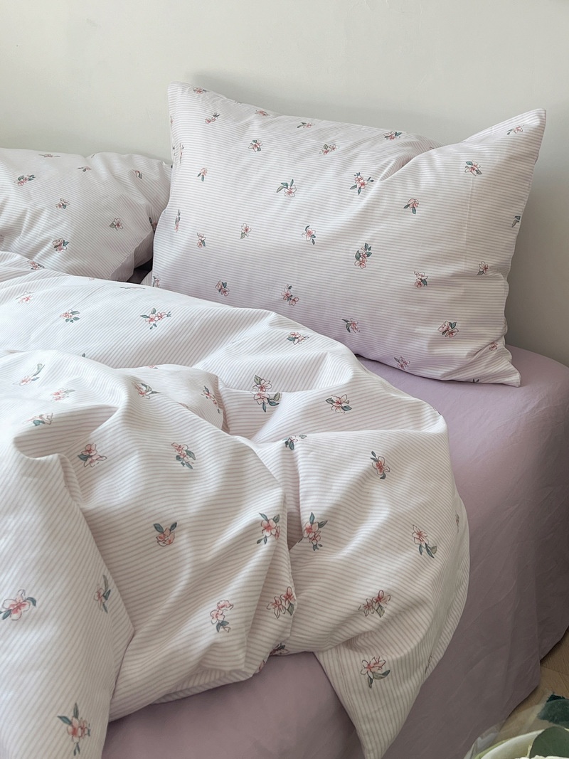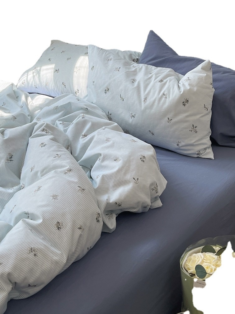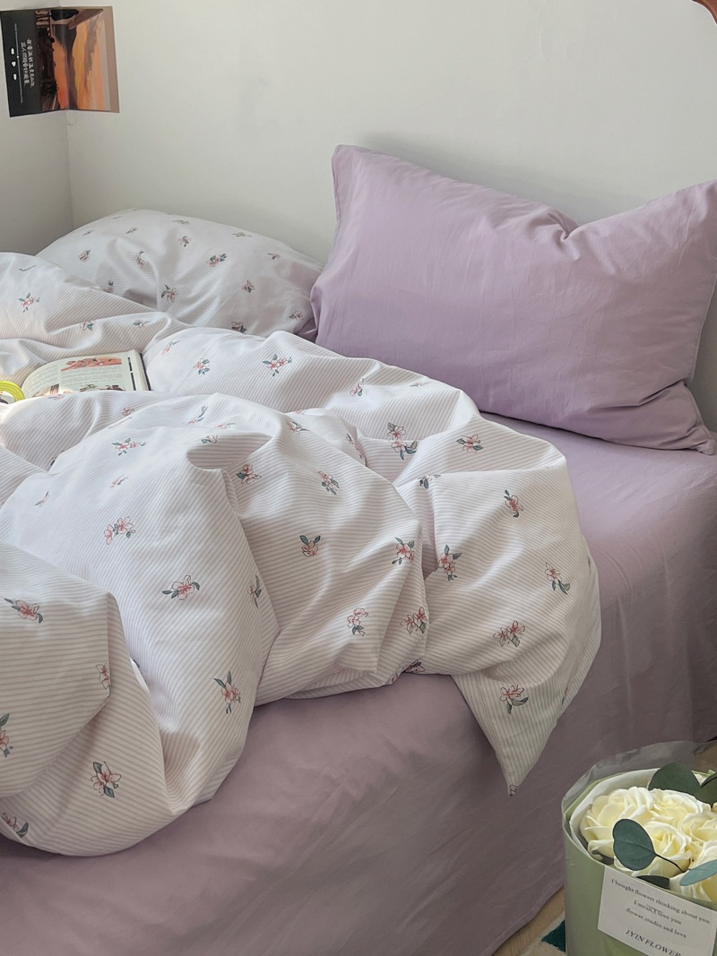 Literary Mixed Floral Pure Cotton Four-piece Set Korean Girly Heart Pure Cotton Quilt Cover Bed Three-piece Set1.5 Sheets