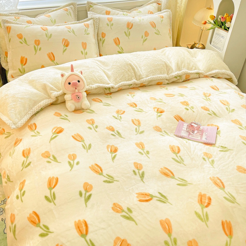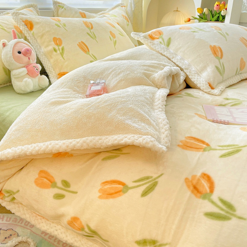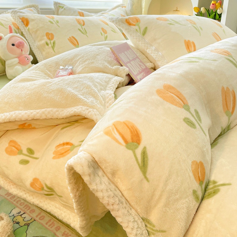 Winter Thickened Milk Rabbit Plush Bed Four-piece Set Double-sided Lamb Flannel Warm Bedding Quilt Cover Sheet