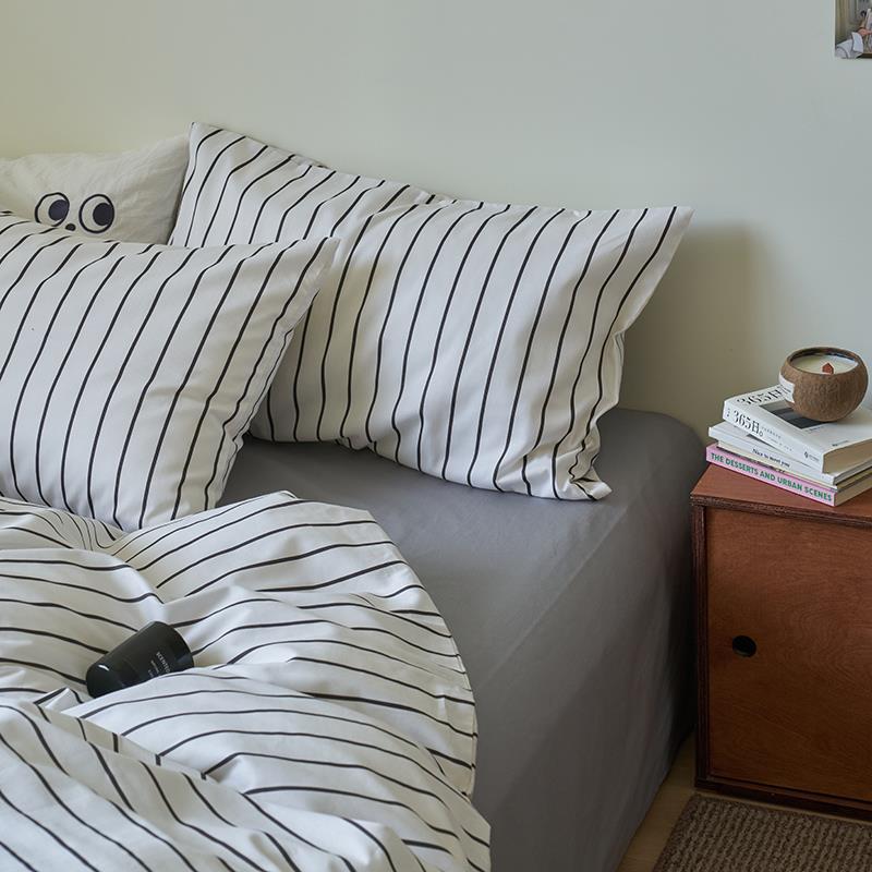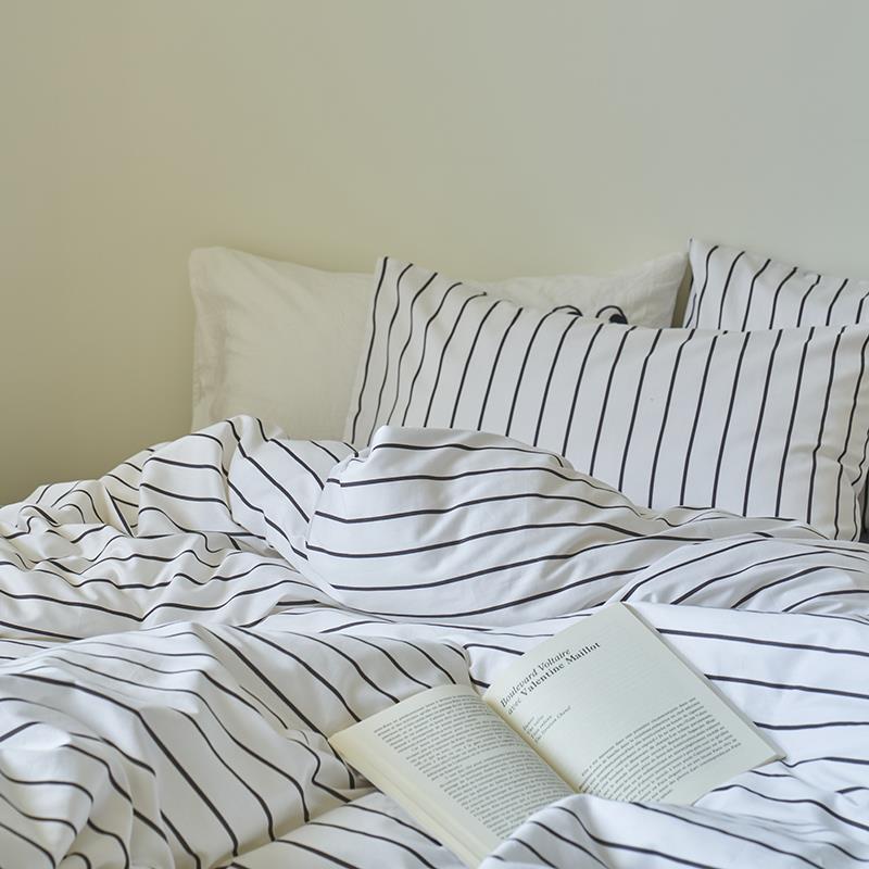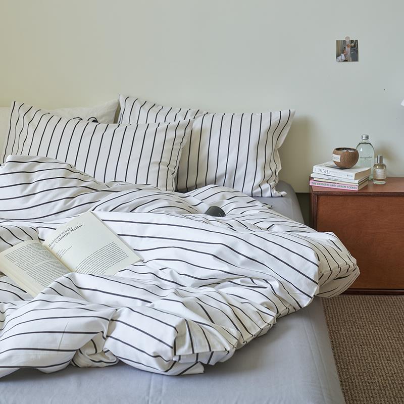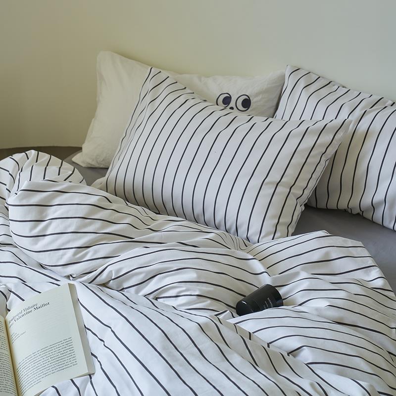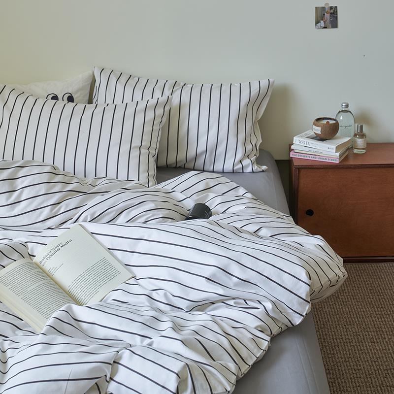 Nordic Literary Striped Cotton Four-piece Set Simple Small Fresh Cotton Quilt Cover Bed Three-piece Set1.8 Sheets