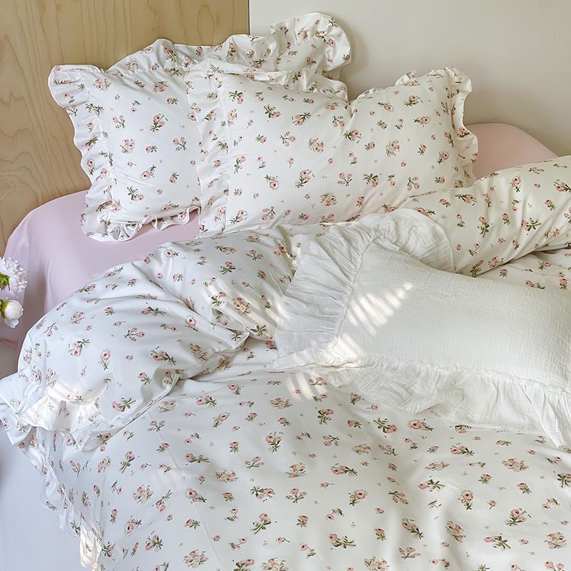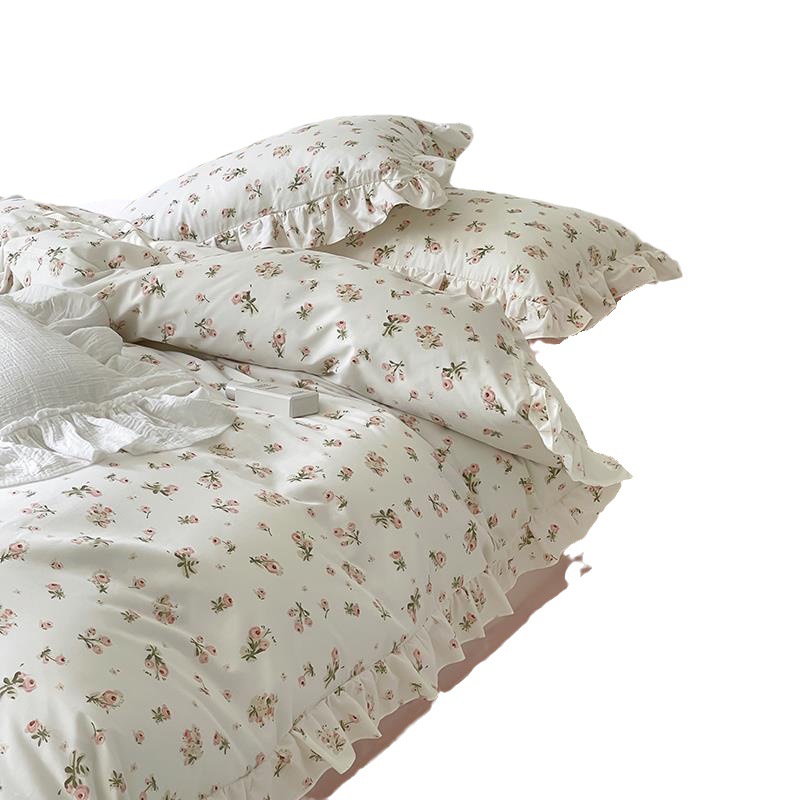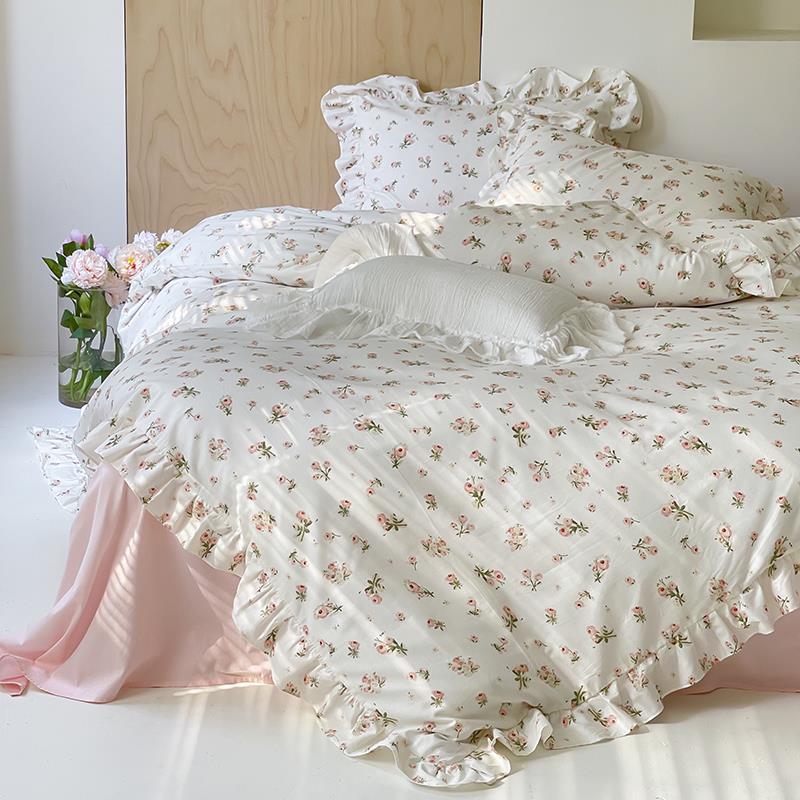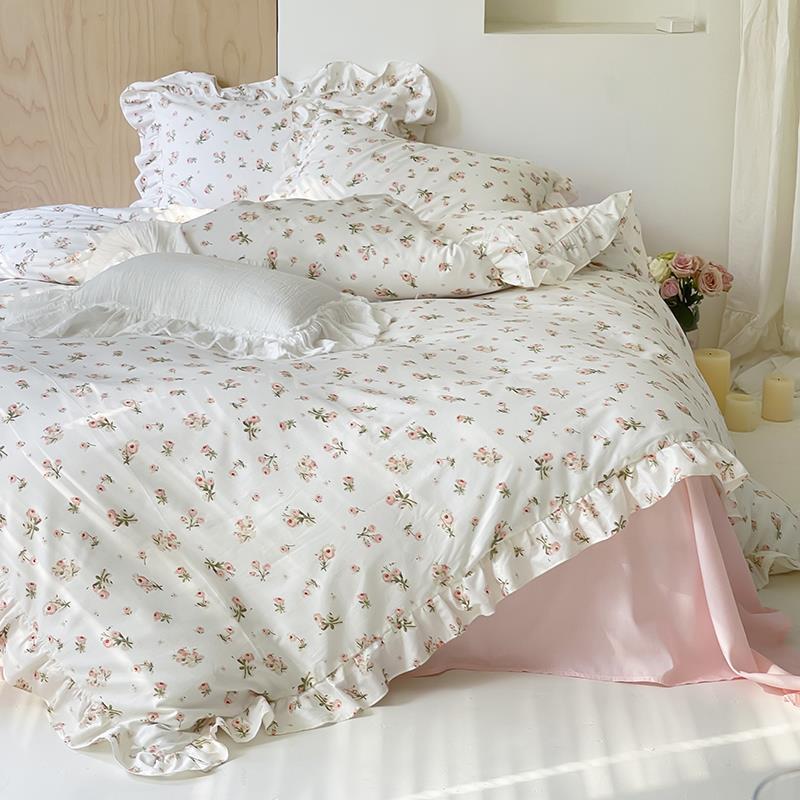 Cream Small Floral Pure Cotton Four-piece Set Xianmei Large Lace Cotton Quilt Cover Bed Three-piece Bed Sheet Set