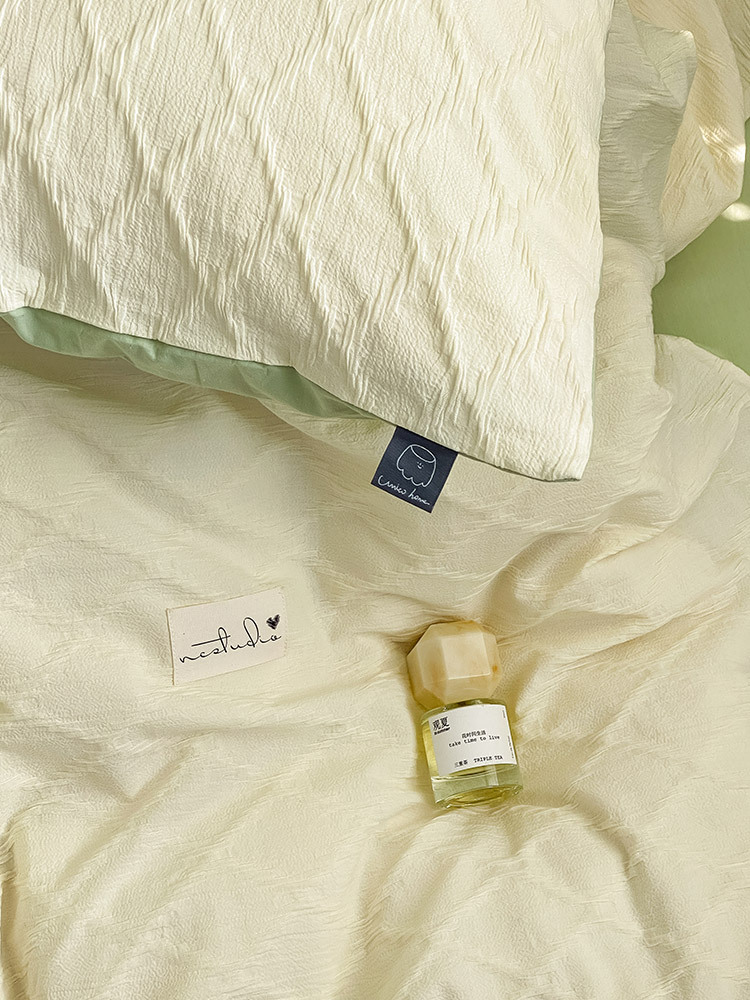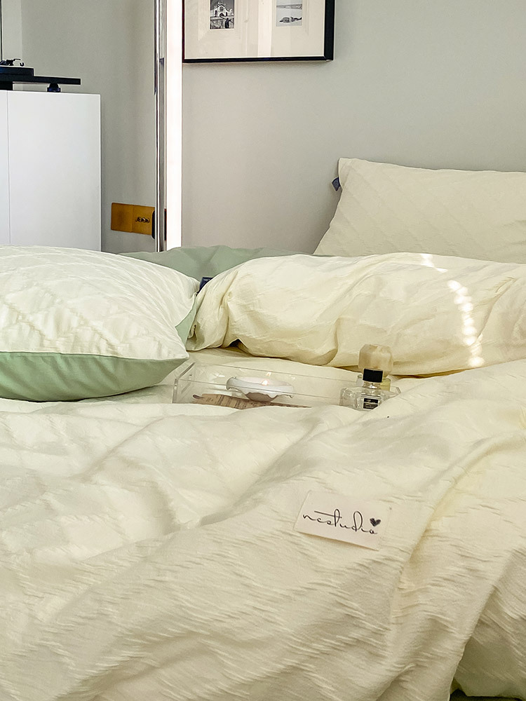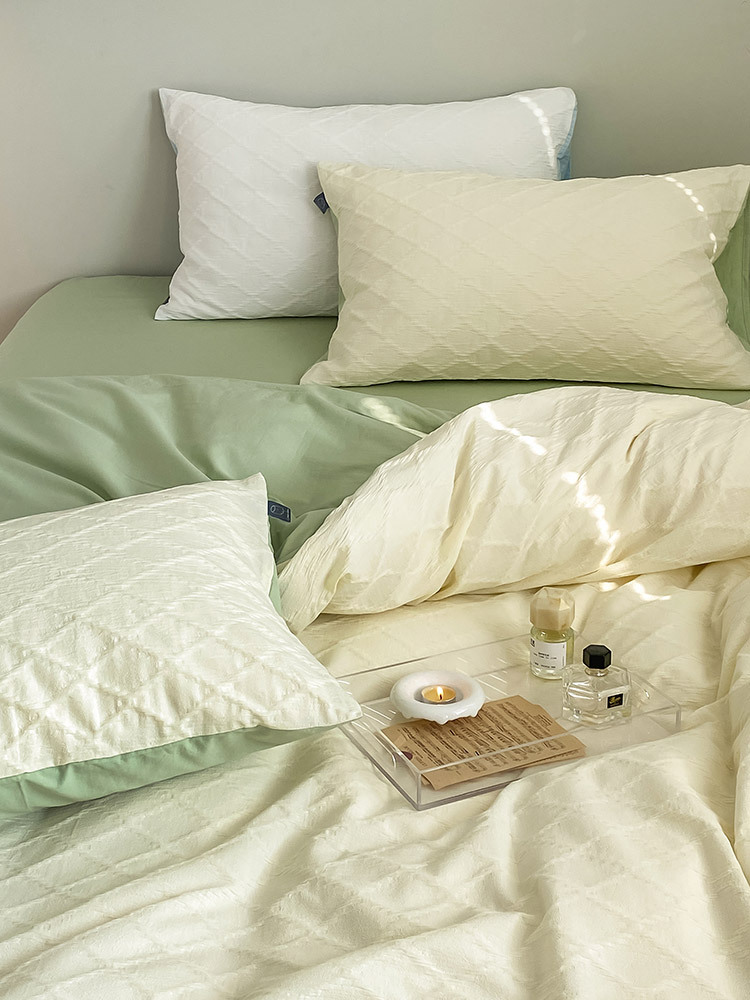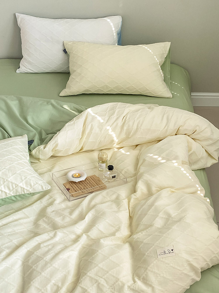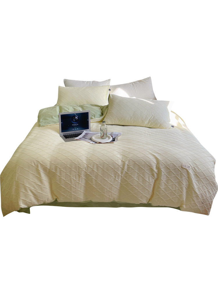Cotton Washed Cotton Jacquard Four-piece Retro Style Yarn-dyed Textured Pure Cotton Quilt Cover Bedding