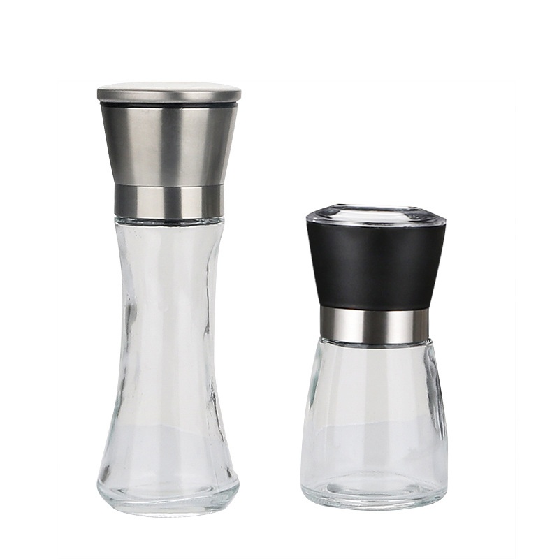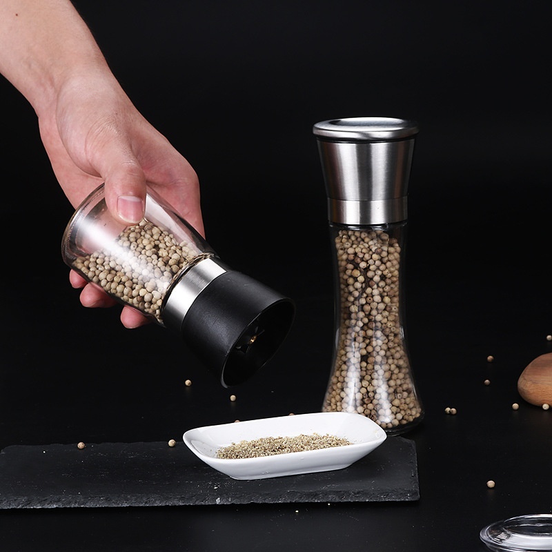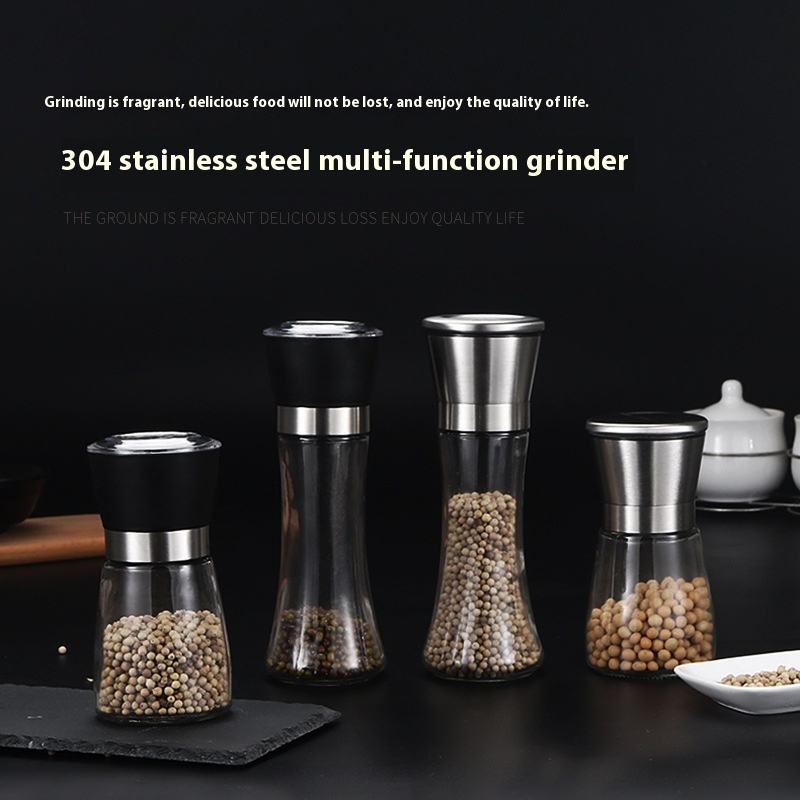 304 Stainless Steel Tall Pepper Grinder Peppercorn Grinder Manual Grinder Glass Seasoning Bottle