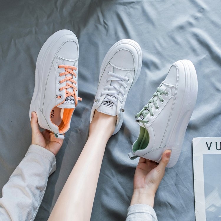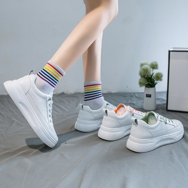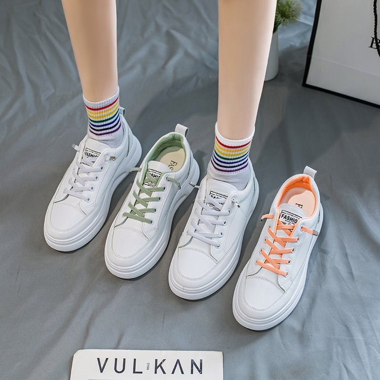 Spring And Summer Sneakers Women's Shoes White Shoes Student Shoes Y Shoes Round Toe Thick Sole Ribbon