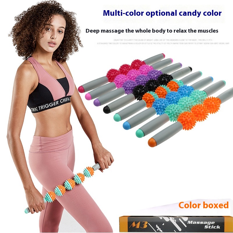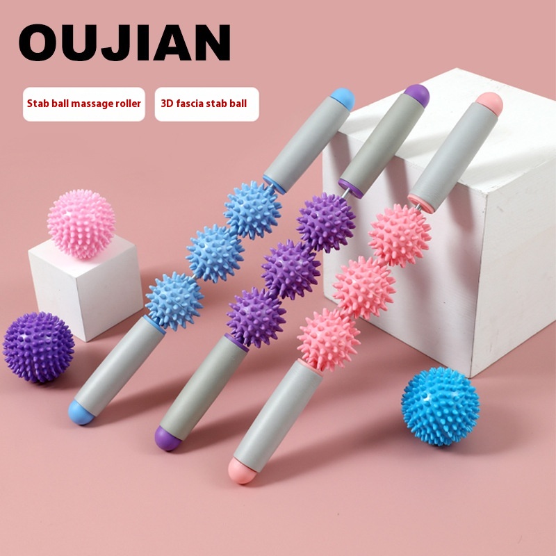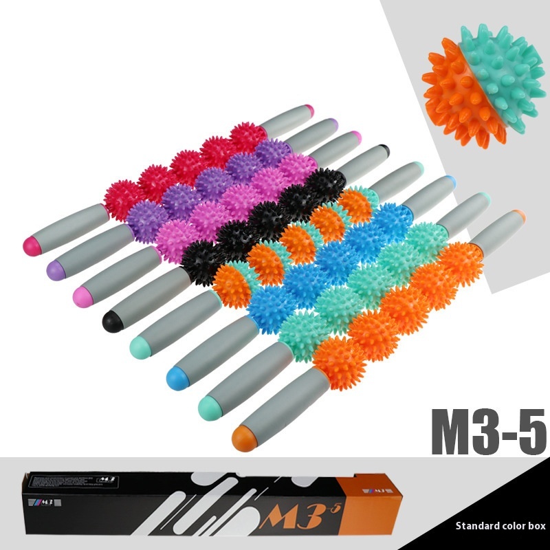 Spiny Ball Massage Stick, Muscle Relaxation Massage, Sports Roller, Fitness Yoga Stick, Hedgehog Ball Fascia Stick, Three Balls And Five Balls