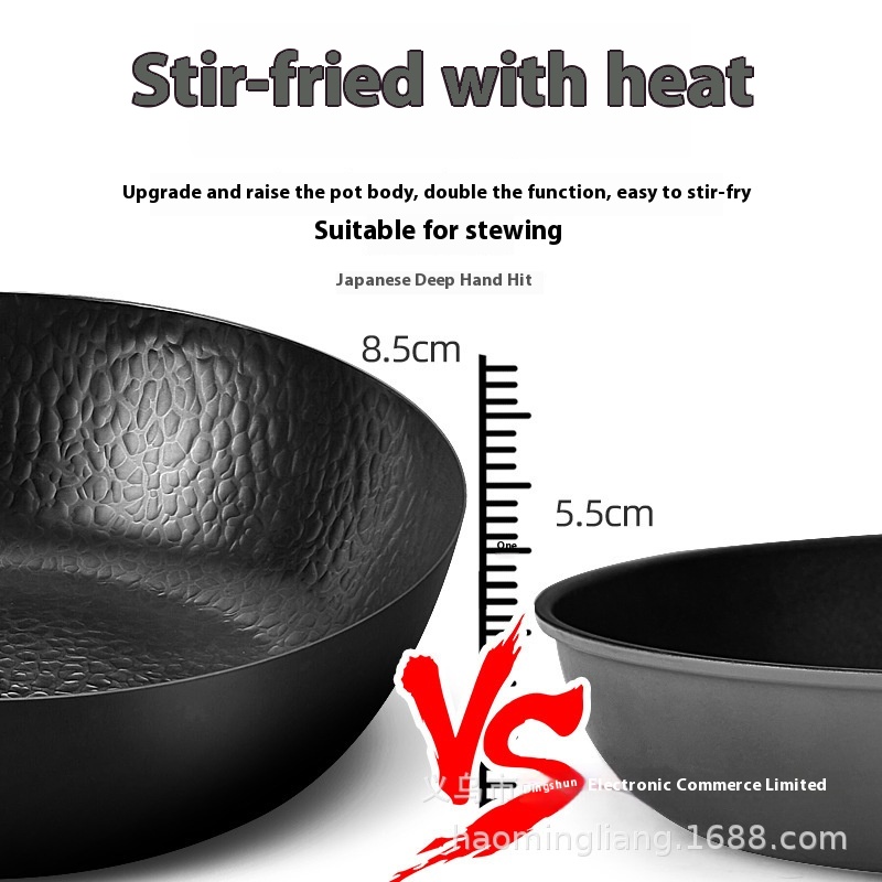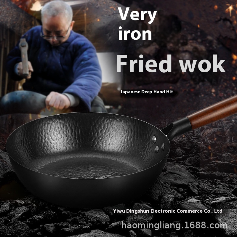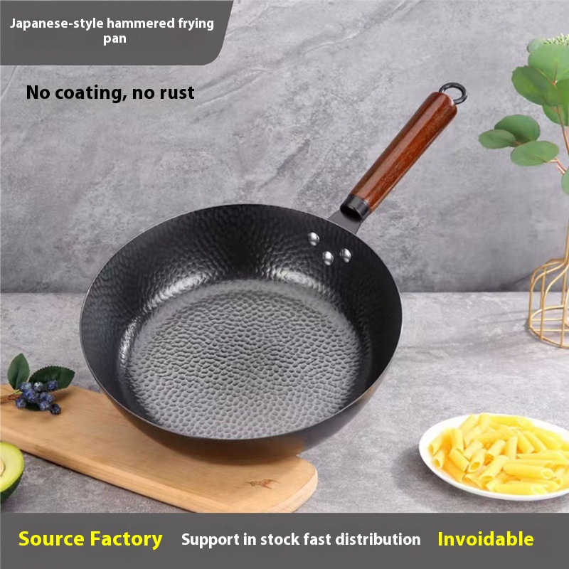 Japanese-style Iron Pot Uncoated Frying Pan Flat Bottom Non-stick Pan Household Cooking Pot Gas Induction Cooker Universal Food Supplement Wok
