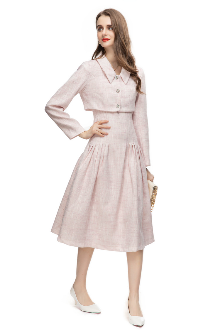 European And American Beauty Autumn And Winter French Style Elegant, Noble, Sweet And Spicy Hong Kong Style Dress Two-piece Set234003