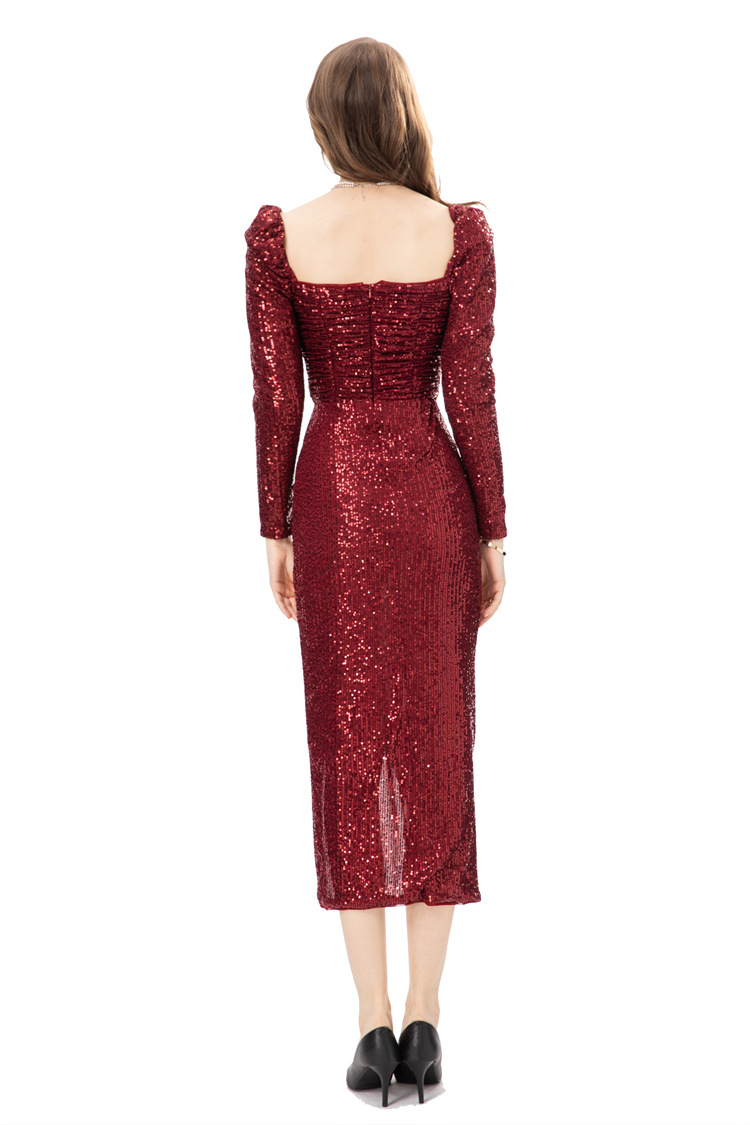 Autumn And Winter European And American E-commerce Women's Waist Sequin Tight Bottoming Party Dress225405