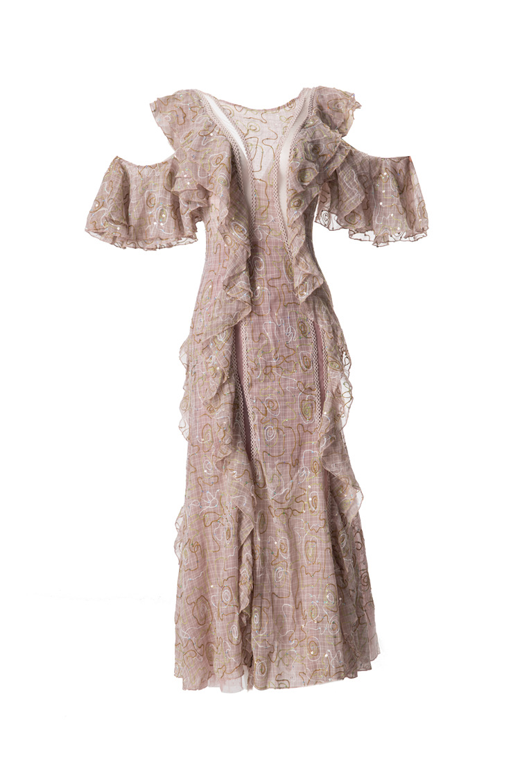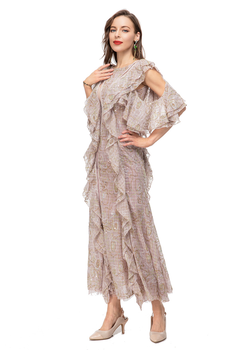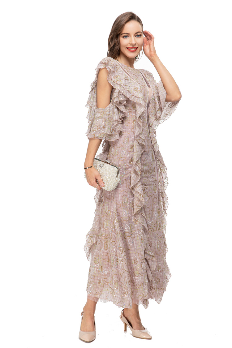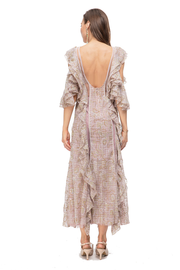 23 European And American Girls French Fashion Sexy Embroidered Sequin Stitching See-through Backless Long Skirt Sweet And Spicy Dress230508