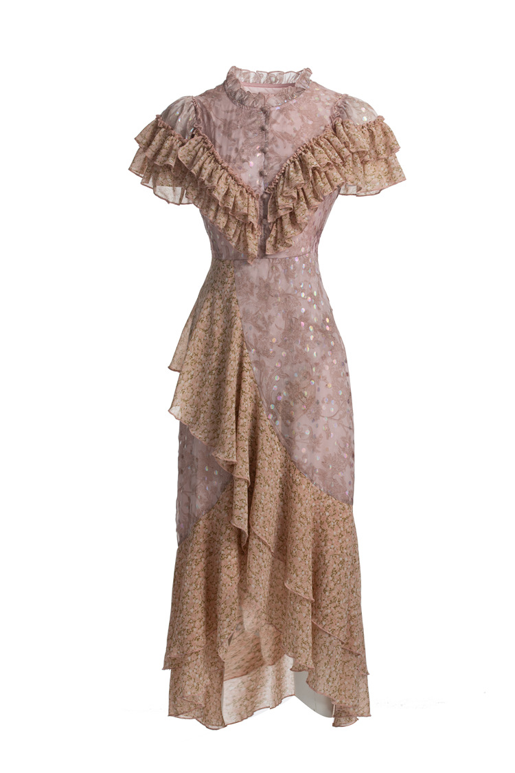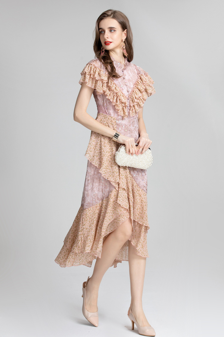 French Fashion Holiday Romantic Printed Fungus Temperament European And American Spring And Summer Fishtail Dress223308