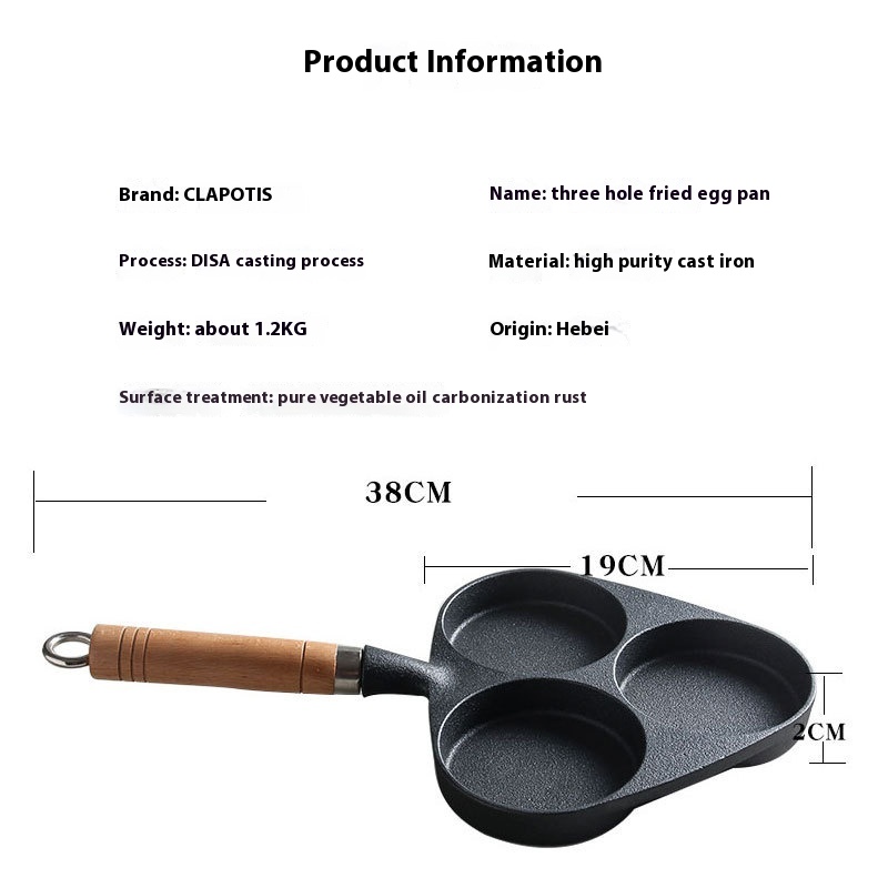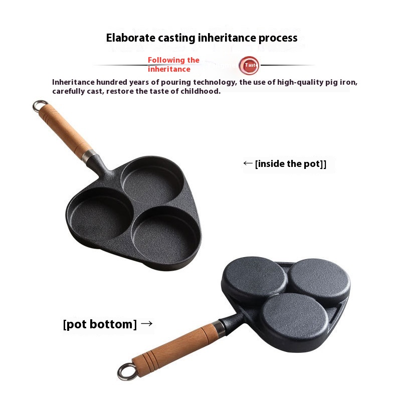 Cast Iron D I S A Thickened Cast Iron Pan Three-hole Omelette Pan Uncoated Pure Iron Pan Egg Dumpling Pan Cast Iron Pan
