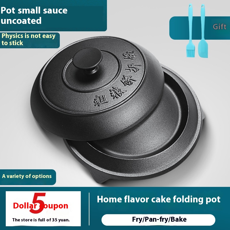 Pancake Folding Pan Uncoated Coarse Grain Pancake Pan Pancake Pan Household Stall Yellow Pan Old-fashioned Cast Iron Pan Griddle Cake Pan