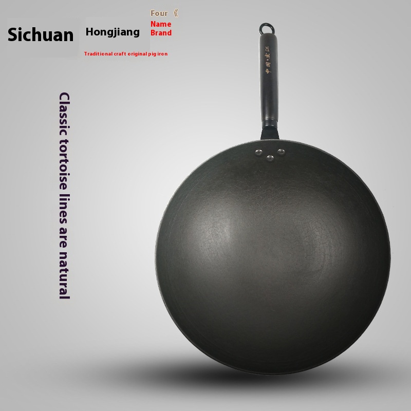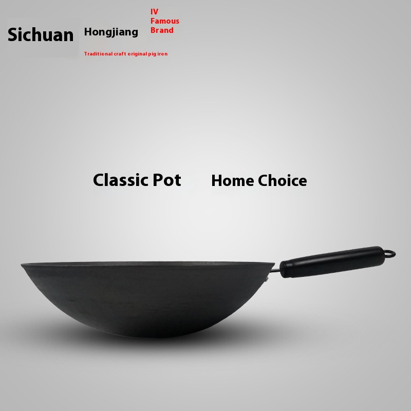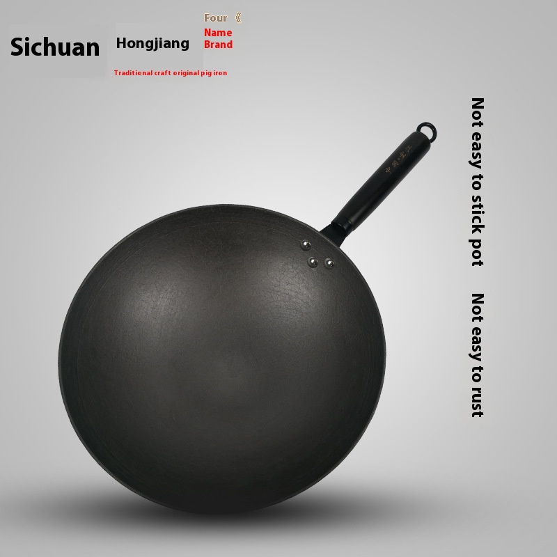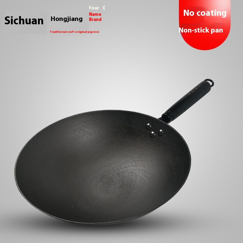 G J U8 Hongjiang Lightweight Old-fashioned Cast Iron Pot Stainless Non-stick Pot Round Bottom Uncoated Cast Iron Pot Wok Cooking Pot Gas Stove