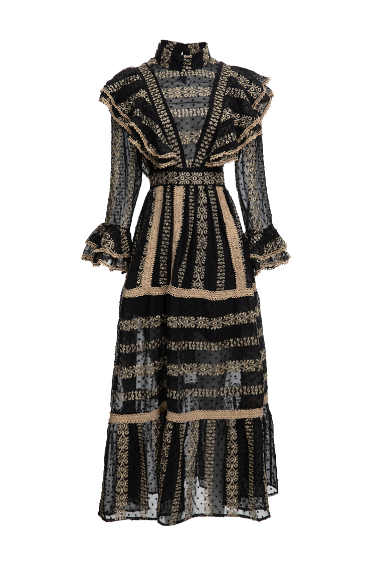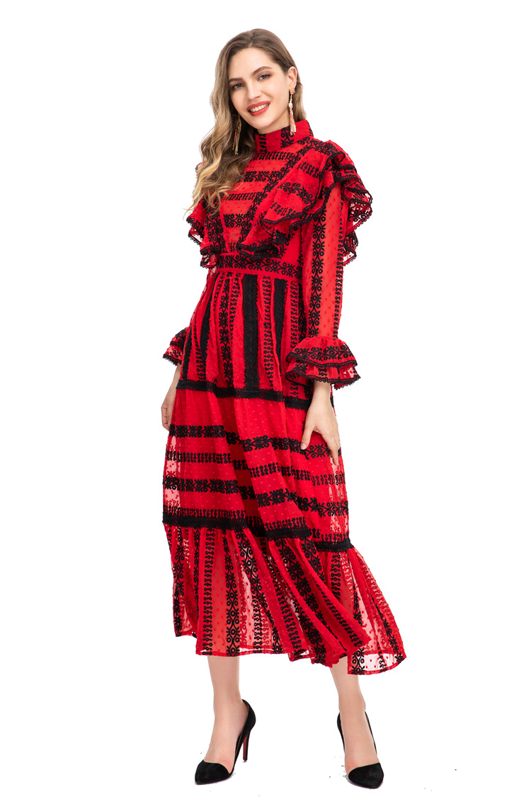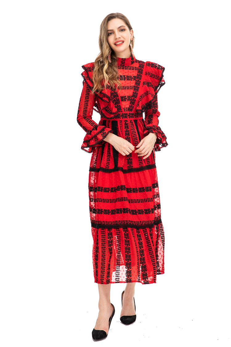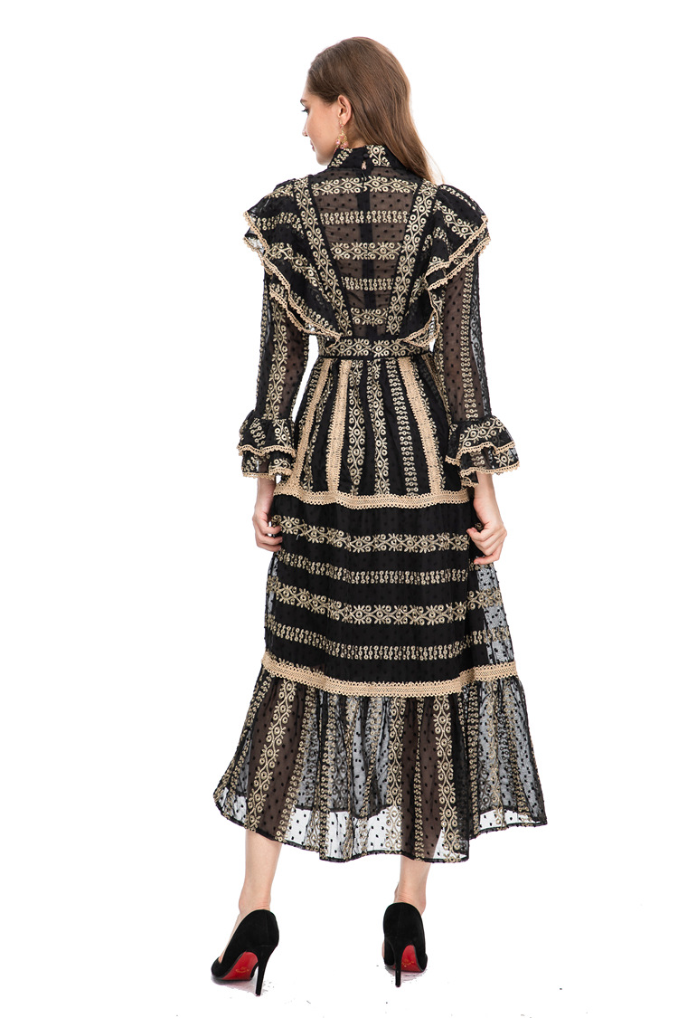 22 European And American Fashion Autumn And Winter Pure Desire See-through Yujie Street-slim Slim Hip-covering Fishtail Long Dress224603