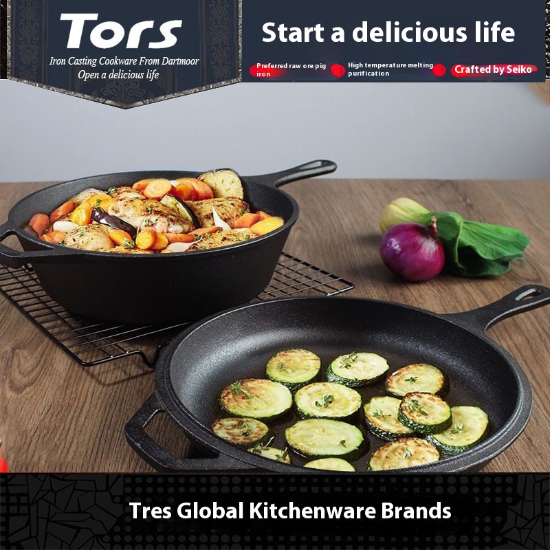 Thors Exports American Cast Iron Single-handle Dual-purpose Pot Steak Frying Pan Pure Iron Pot Household Non-stick Pan