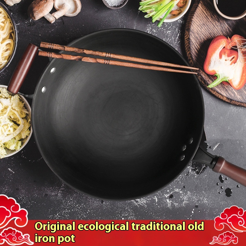 Old-fashioned Household Uncoated Non-stick Pan Restaurant Kitchen Wok Gas Stove Applicable Cast Iron Pan