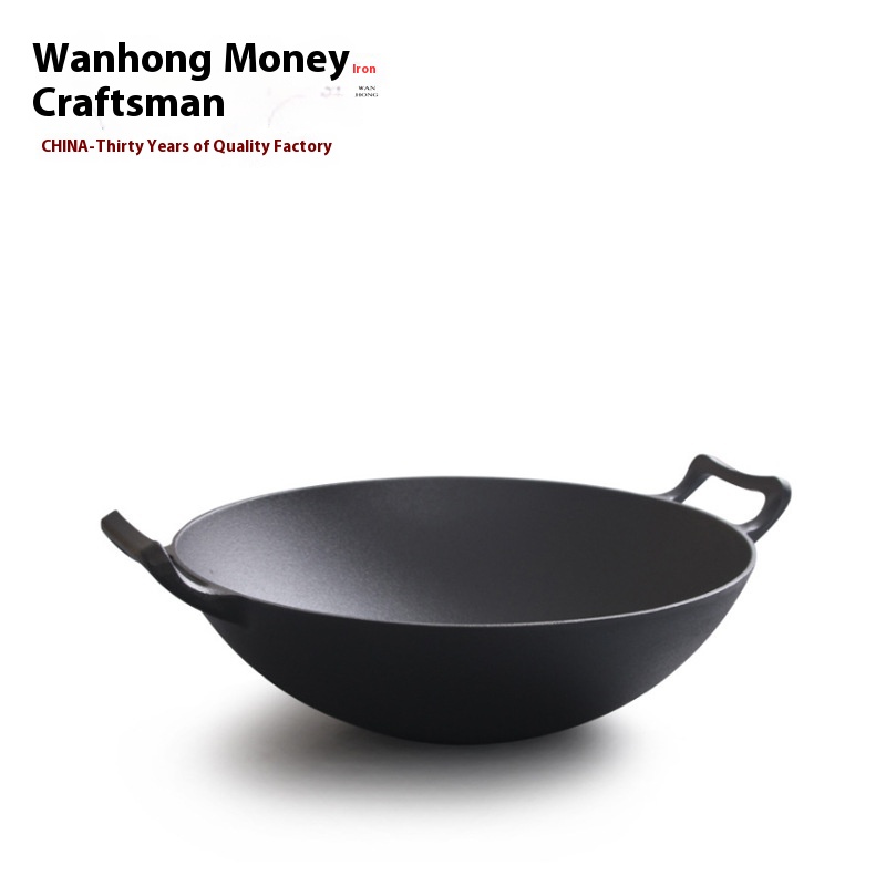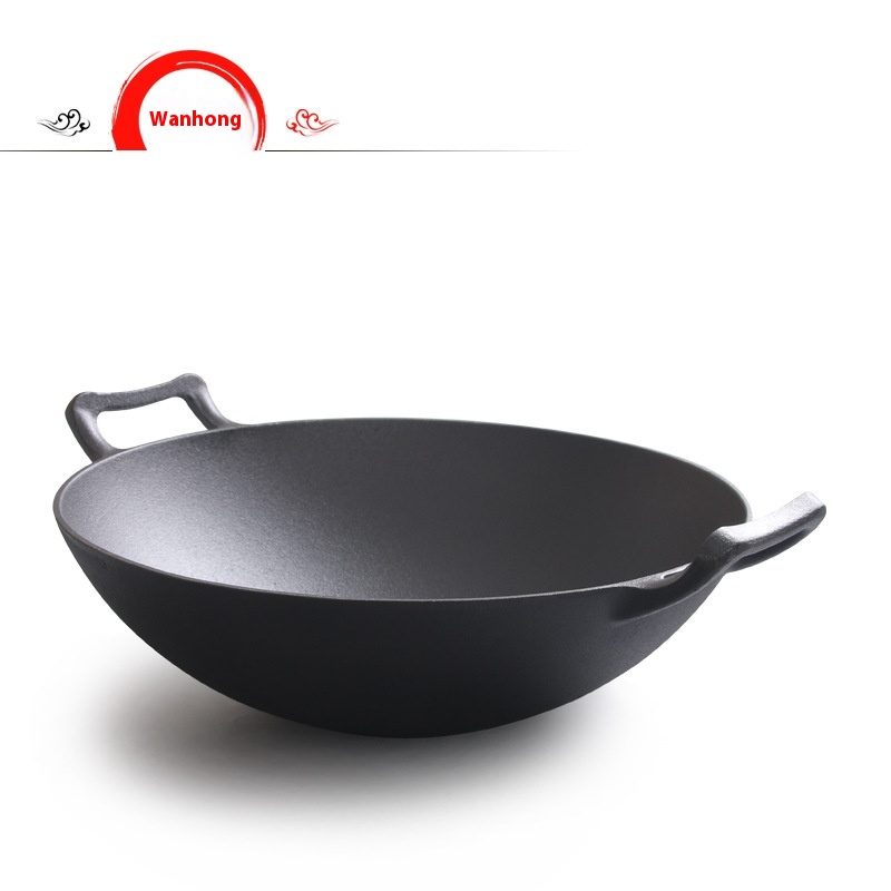 Cast Iron Pot Double-eared Round Bottom Wok Old-fashioned Cast Iron Pot32cm36cm Stir-fry Pot Supports