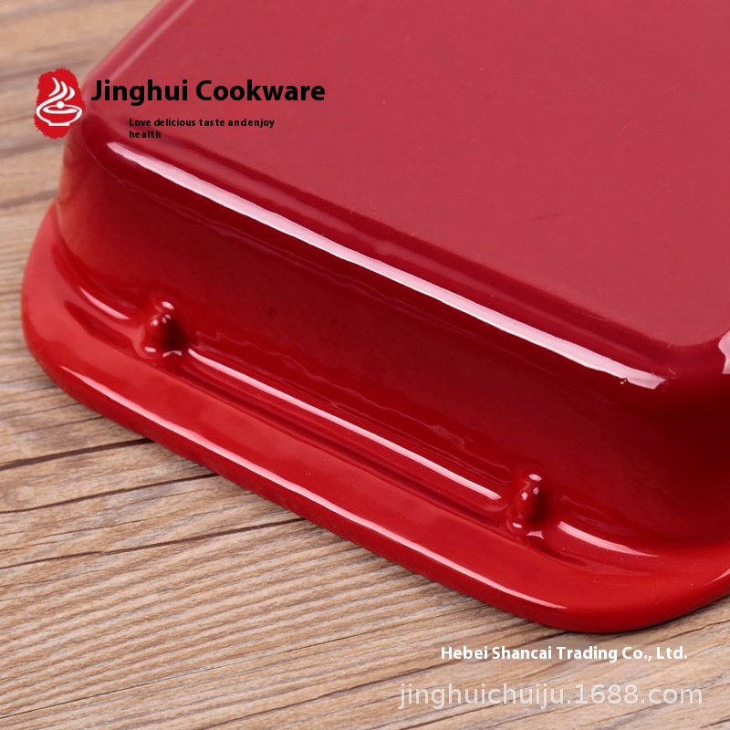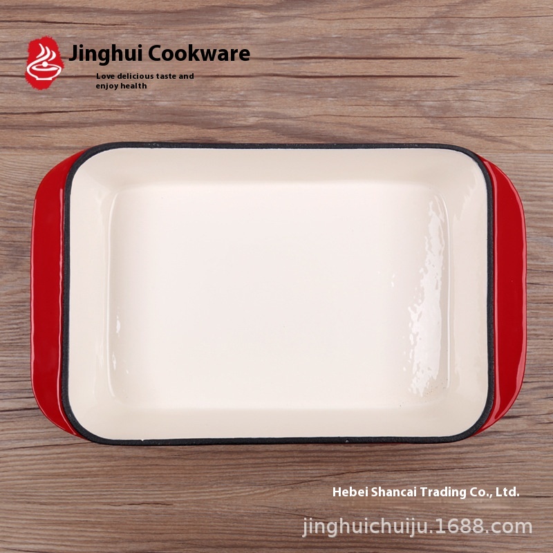 Cast Iron Enamel Enamel Pot Rectangular Barbecue Grilled Fish Cheese Cheese Frying Pan Western Food Hotel Serving Plate Cast Iron Pot