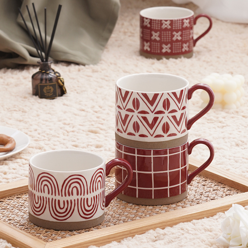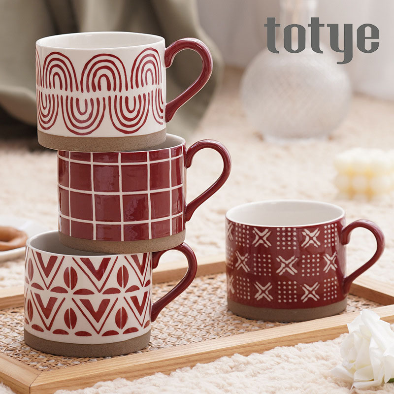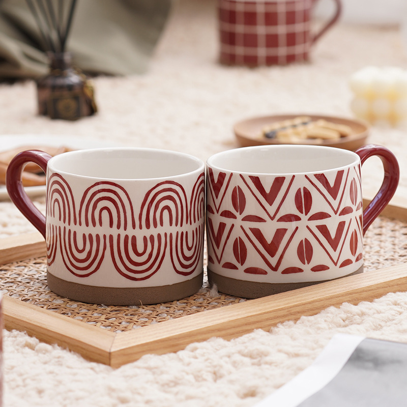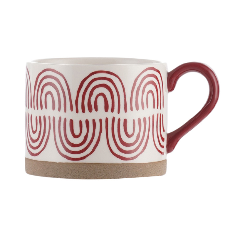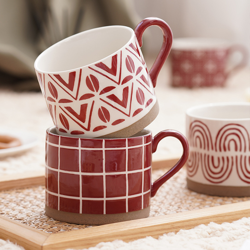 Large-capacity Coffee Cup Hand-painted Stoare Frosted Red Festive Wedding Souvenir Christmas Gift Ceramic Cup
