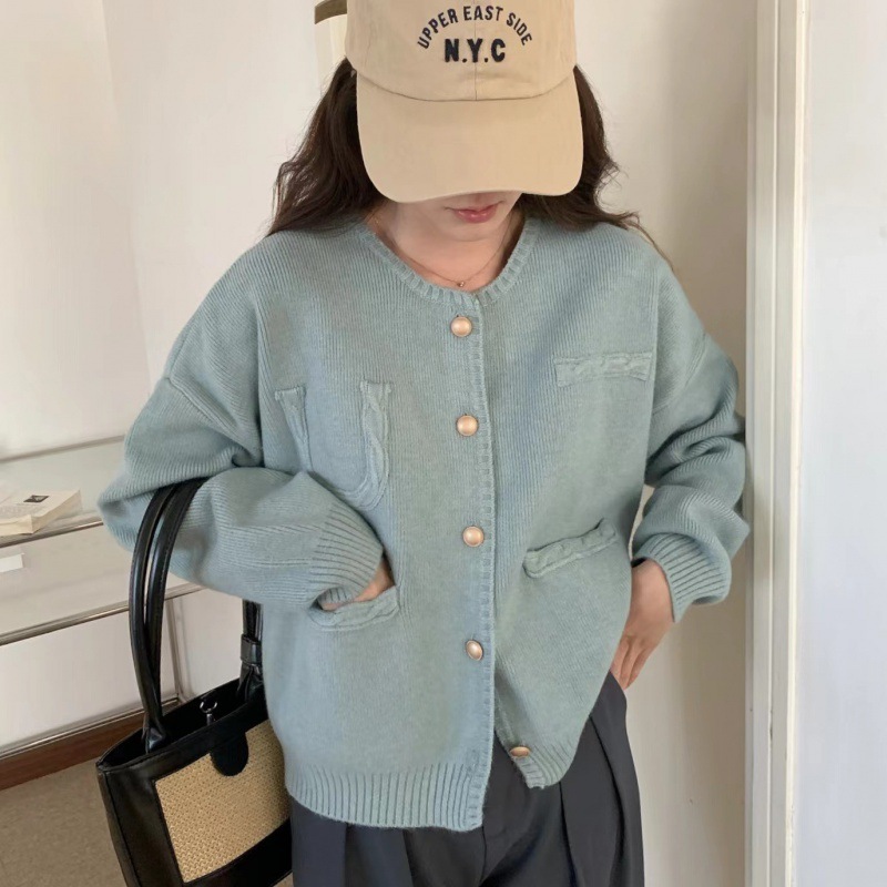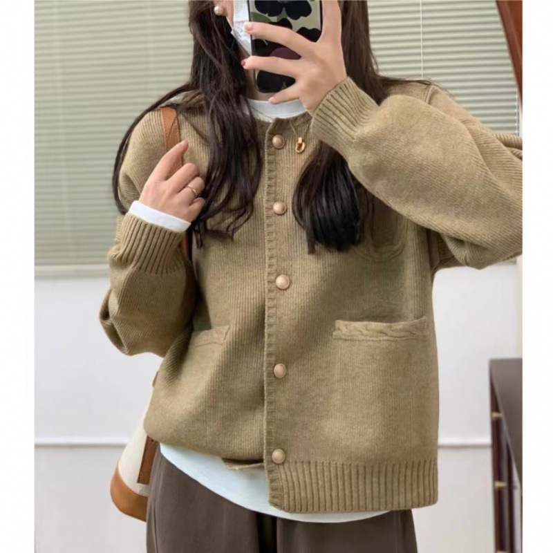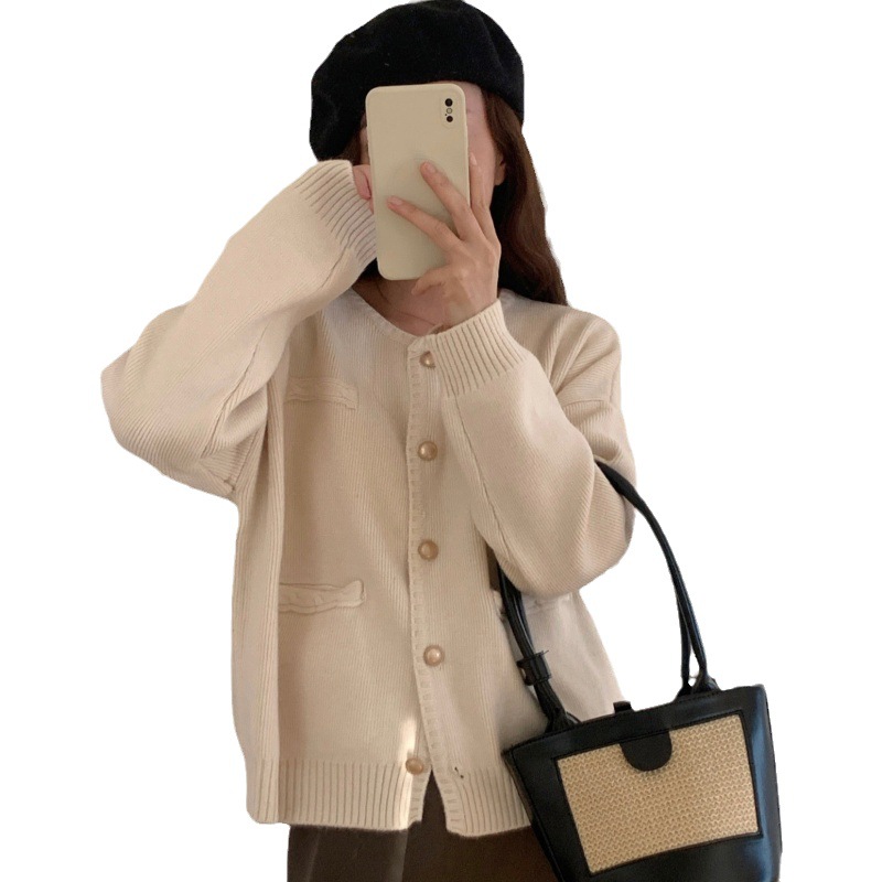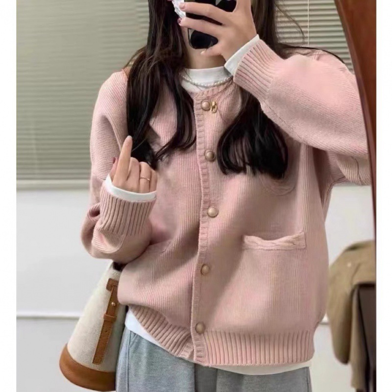 Round Neck Sweater Jacket For Women, Autumn And Winter Fashion, Korean Style, Small, Foreign, Small, Fragrant, Knitted Cardigan, Women's Top For Outer Wear