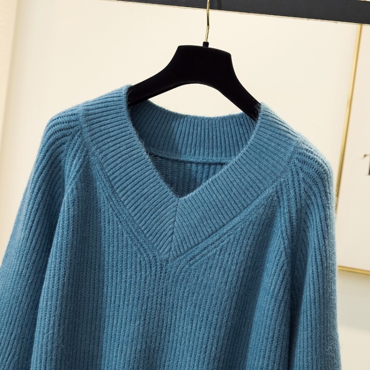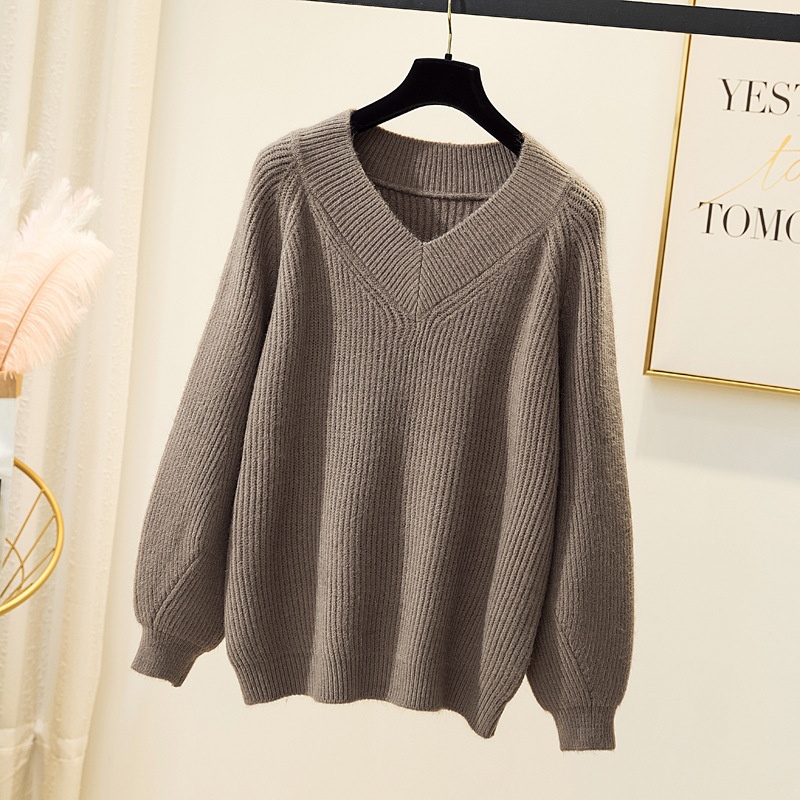 Real Shot Of Thickened Fat M M Sweater For Women, Lazy Style, Loose, Large Size, Autumn And Winter Fashionable V-neck Pullover Sweater