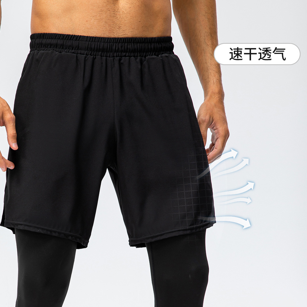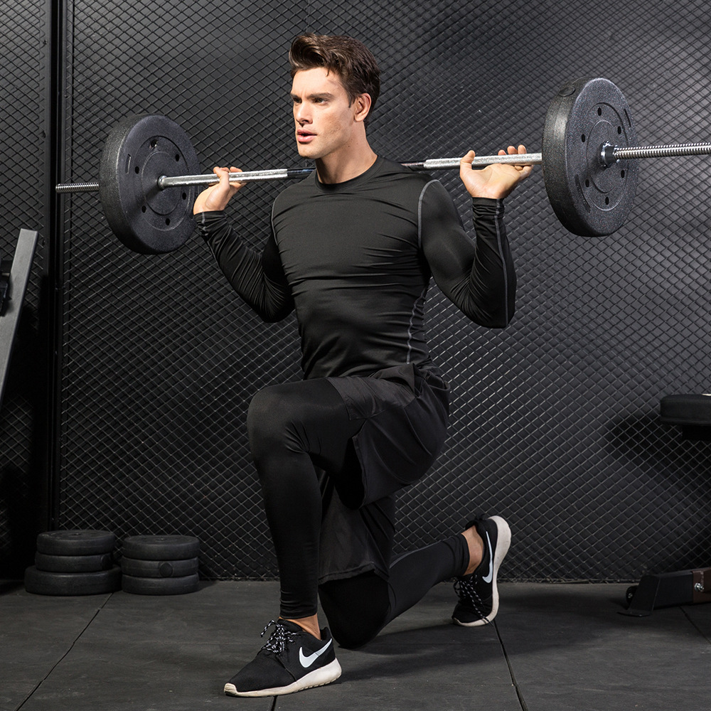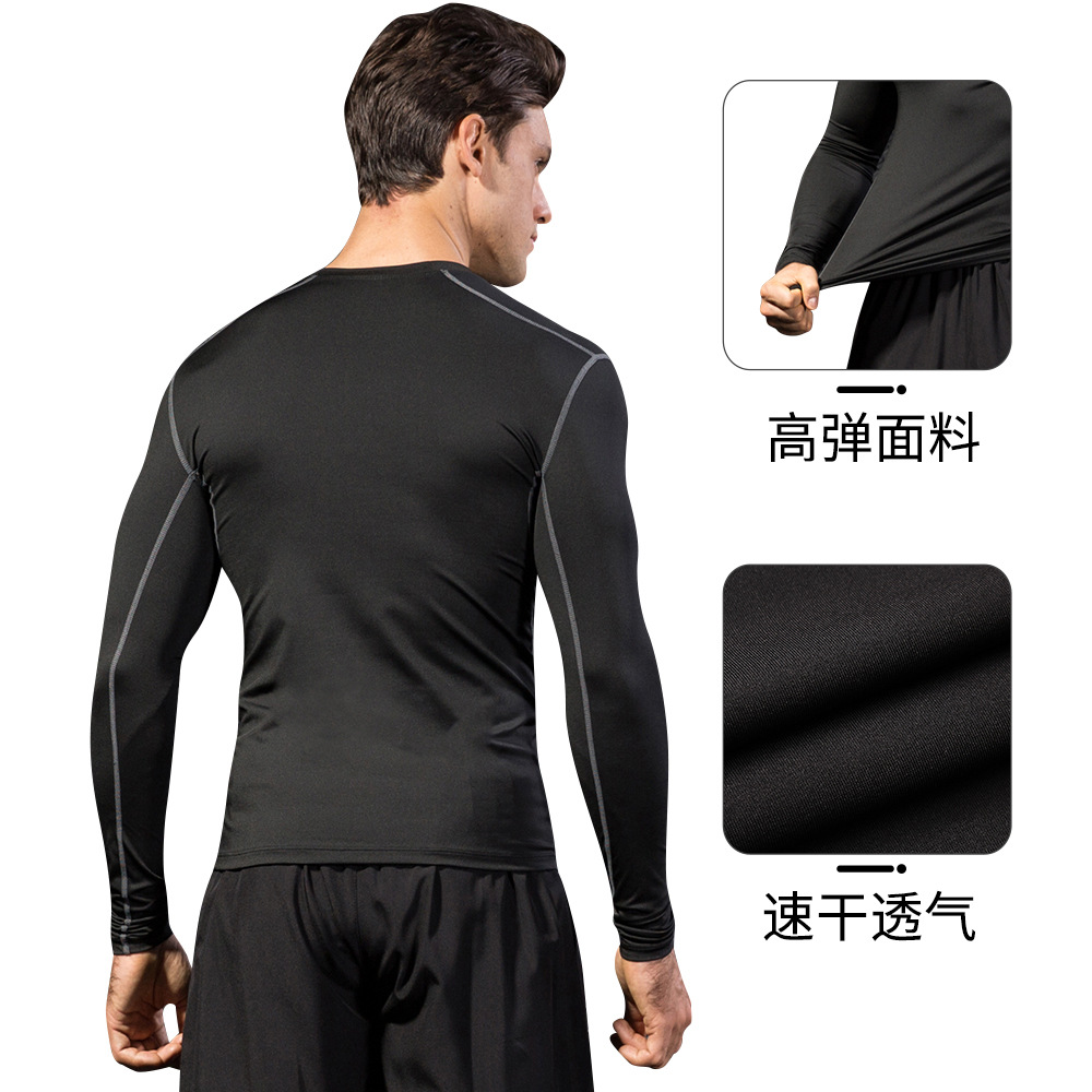 Men's Fitness Suit Tight-fitting Sports Long-sleeved Running Fake Two-piece Trousers Quick-drying And Sweat-wicking Two-piece Set1019+7010